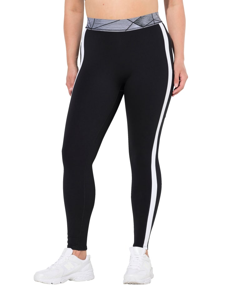 Леггинсы, облегающие, высокая талия. Карманы между боковыми полосками и эластичный пояс со спортивным рисунком.