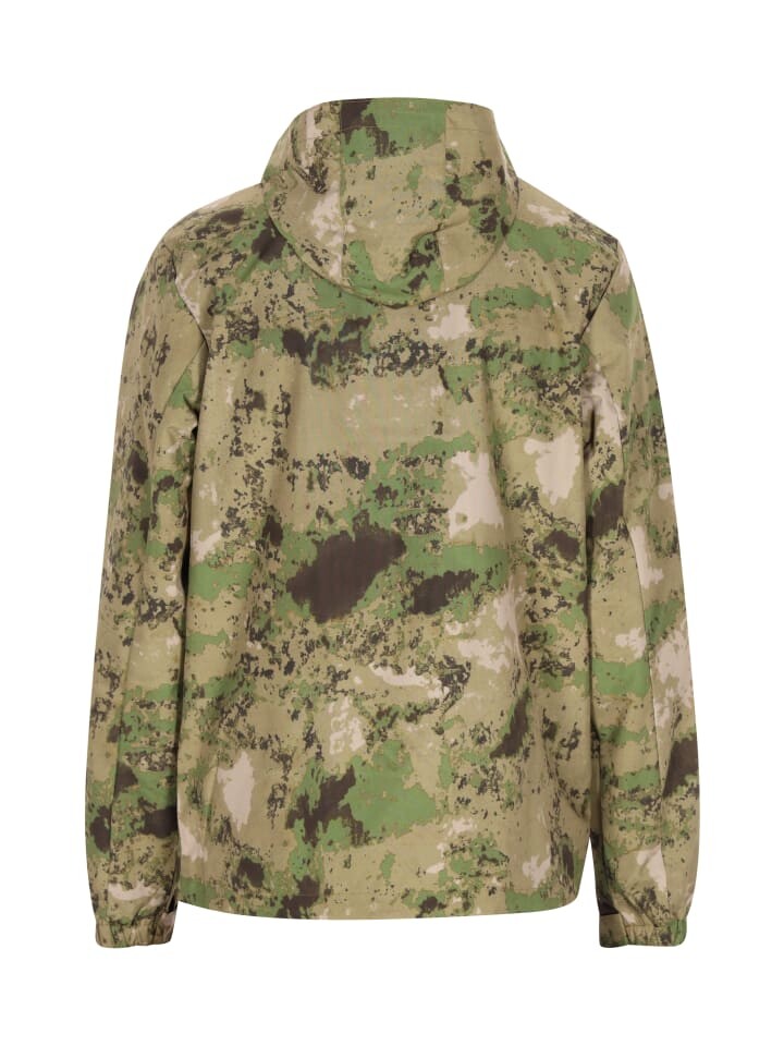 Идеально подходит для любителей активного отдыха и тактических экспертов: эта куртка с капюшоном впечатляет своим привлекательным камуфляжным рисунком. Передняя молния во всю длину скрыта тканевой планкой и фиксируется кнопками или липучками — идеальное сочетание стиля и функциональности. Высокий воротник плавно переходит в регулируемый капюшон на шнурке, обеспечивая дополнительную защиту от непогоды.