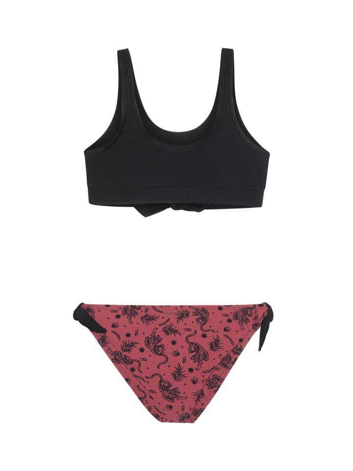 Бикини PRTNAOMI JR уникально красиво. На верху бралетта напечатана надпись «Sunshine Gang», а на плавках бикини стандартного кроя нанесен узор по всей поверхности из летней коллекции этого года. Верх бикини и боковые части плавок украшены шикарными бантами. В размерах 140-176 имеются съемные поролоновые чашки. Ткань также не содержит ПФУ, что позволяет сократить использование этих химикатов и их вредное воздействие на окружающую среду. PRTNAOMI JR — идеальное бикини для солнечного лета.