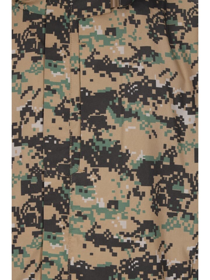 Эта куртка с капюшоном, созданная для активного отдыха на свежем воздухе, имеет узор в стиле милитари и переднюю молнию во всю длину с кнопками или липучкой. Высокий воротник, переходящий в регулируемый капюшон, обеспечивает дополнительную защиту. Регулируемые манжеты и несколько удобных карманов делают их идеальными для ситуаций, когда требуется маскировка и защита от непогоды.