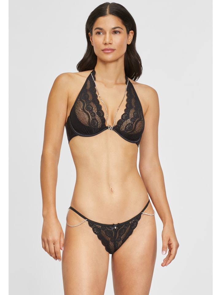 — Эротический бюстгальтер с вырезом-халтер и съемной цепочкой со стразами