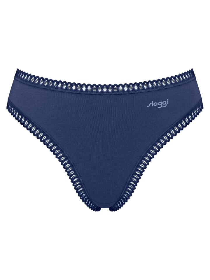 - Женские трусы с высокой талией Sloggi. - В практичной упаковке из трех штук. - Одинарный трикотаж из органического хлопка с стрейчем. - С нежным эластичным кружевом