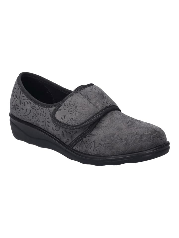 Стильный черный текстильный верх и удобная текстильная подкладка Nice 80 от Seibel обеспечивают максимальный комфорт и тепло. Легкая и гибкая подошва из полиуретана обеспечивает превосходную амортизацию и поддерживает ногу при каждом шаге. Благодаря удобной ширине H и практичной застежке-липучке обувь можно индивидуально отрегулировать, ее легко надевать и снимать — идеально подходит для всех, кто ценит функциональность и стиль. Наслаждайтесь уютными часами в тапочках, которые не оставляют желать лучшего!