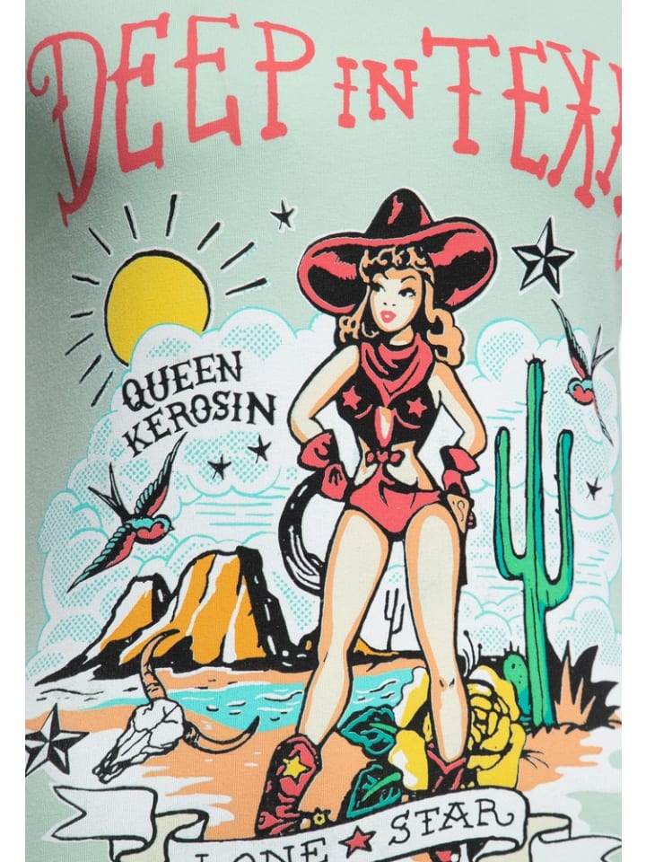 Самая горячая девушка Дикого Запада! В этой футболке от Queen Kerosin вы будете привлекать внимание не только на Диком Западе. Яркий ретро-принт спереди в стиле «ковбойша» делает эту вещь узнаваемой. Облегающий крой в сочетании с эластичным трикотажным полотном из высококачественной смеси хлопка и эластана также обеспечивает удобство и оптимальный комфорт при ношении, что оптимально дополняется приятным ощущением на коже и комфортом при ношении. Короткие рукава и классический круглый вырез завершают очаровательно провокационный винтажный образ. Незаменимая рубашка из коллекции для поклонников Queen Kerosin. Эту рубашку можно носить как в повседневном стиле с кроссовками и джинсами, так и с ботинками и кожаной курткой. Винтажная футболка с короткими рукавами от Queen Kerosin. Эффектный принт спереди в стиле пин-ап в стиле коровы. Женственный облегающий крой. Классический круглый вырез. Максимум. комфорт при ношении благодаря содержанию эластана