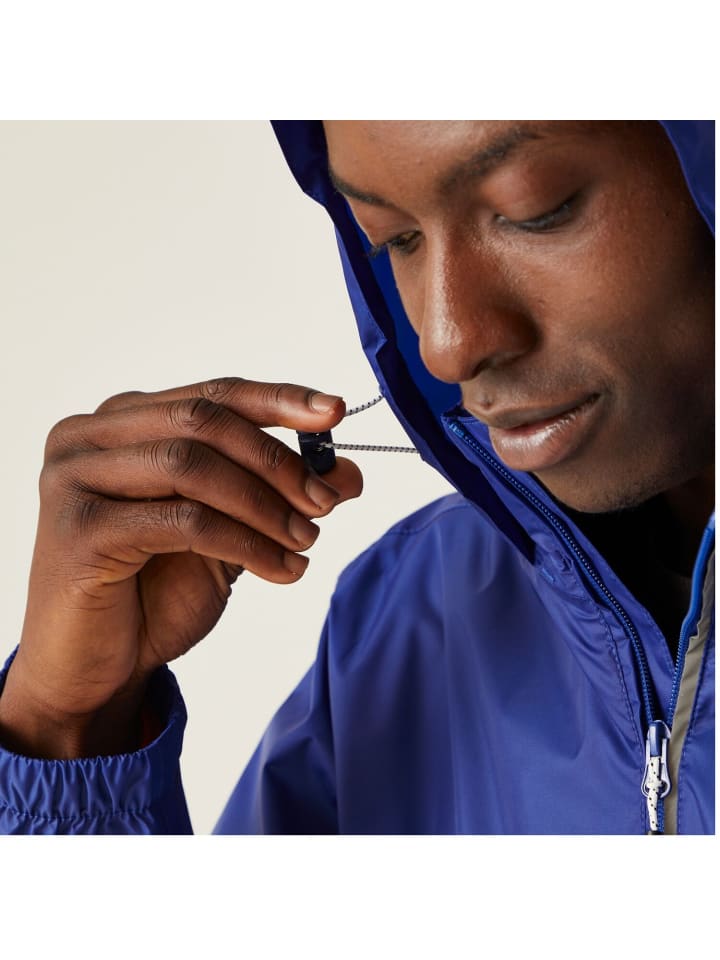 Функциональный мужской дождевик с сетчатой подкладкой и проклеенными швами. Дождевик Regatta имеет водяной столб высотой 5000 мм и сварные швы, благодаря чему куртка остается водоотталкивающей. Внутри дождевик оснащен сетчатой подкладкой, что обеспечивает удобство ношения. Светоотражающие полосы на куртке сделают вас лучше заметным в плохую погоду и в темное время суток. Куртку можно полностью спрятать в левый боковой карман, что обеспечивает очень маленький размер упаковки.