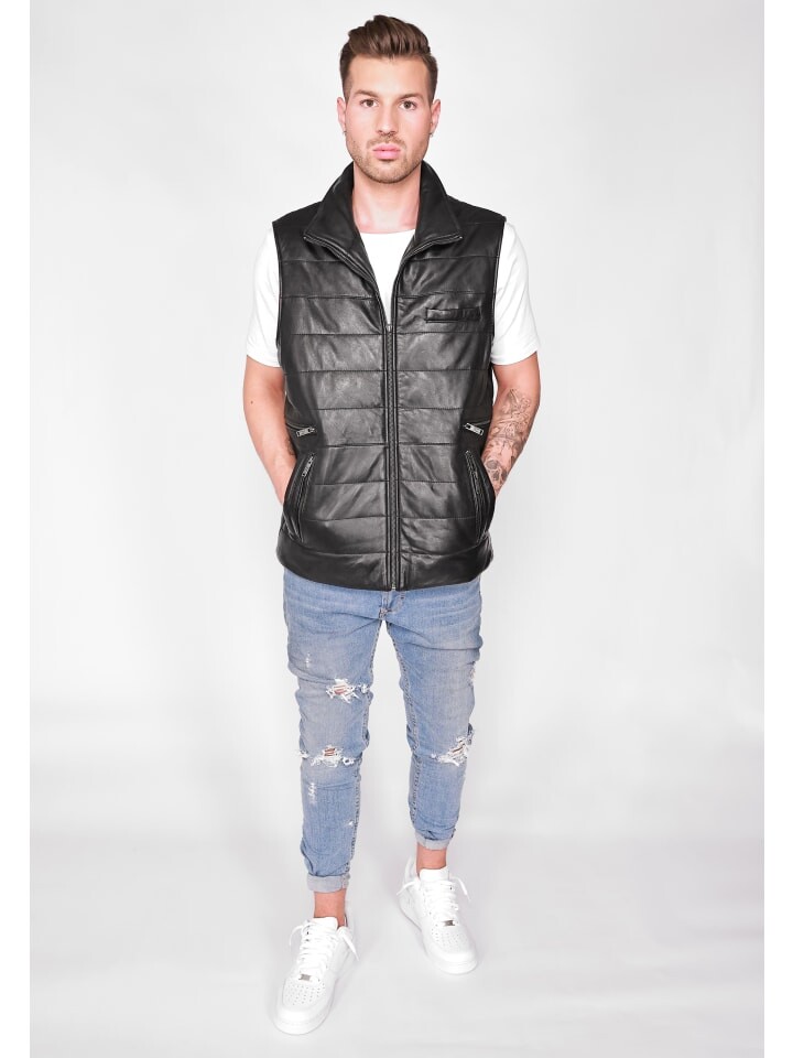 Кожаный жилет из бархатистой мягкой кожи от качественного бренда JCC. Прочный кожаный жилет со стегаными швами сочетает в себе высококачественную кожу и высокий уровень комфорта. Два боковых кармана на молнии и два дополнительных комбинированных кармана обеспечивают максимальный комфорт. Внутри есть три внутренних кармана. Жилет очень подходит для перехода между сезонами, поскольку его ветроотталкивающие свойства и набивка обеспечивают тепло и безопасность весной и осенью.