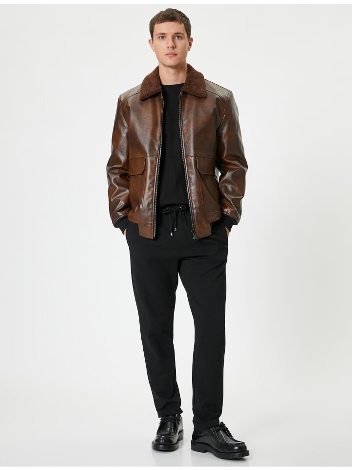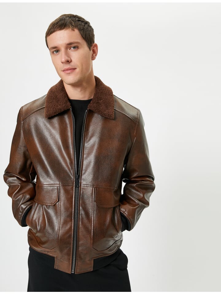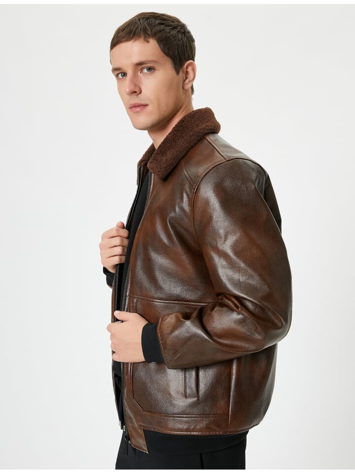 Кожаная куртка KOTON Jacke, коричневый 14 514₽