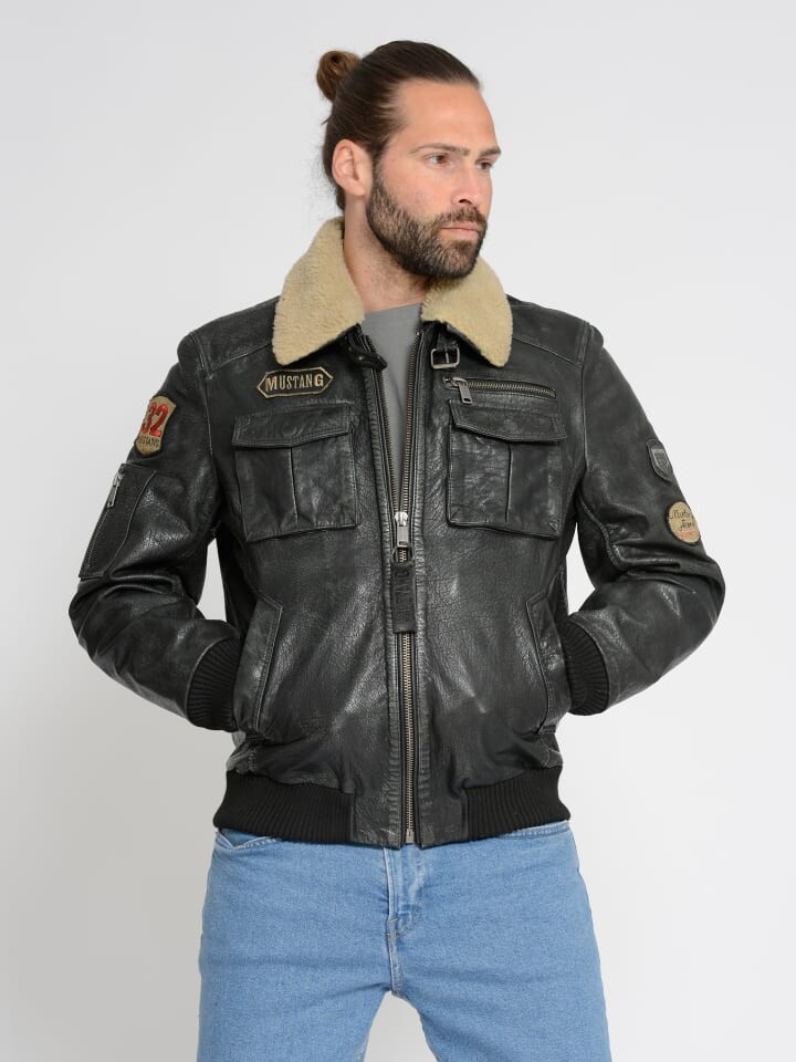 Кожаная куртка Mustang Lederblouson Karlstad, черный