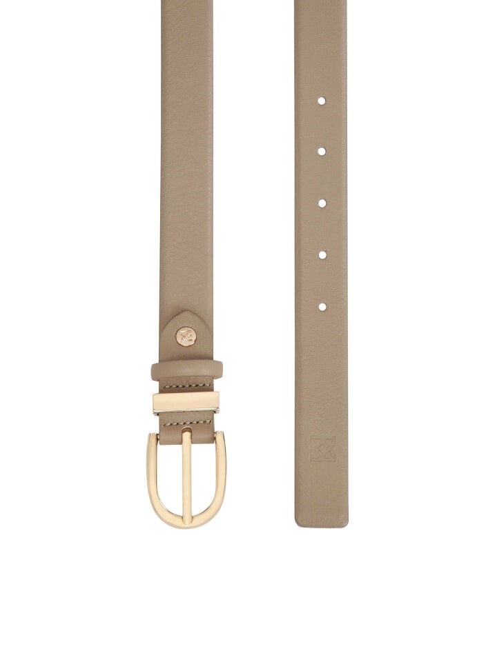 Женский ремень из высококачественной лицевой кожи выглядит вне времени и универсально. Кремовый цвет в сочетании с золотой пряжкой создает нейтральную композицию, которая скрасит монохромные образы.