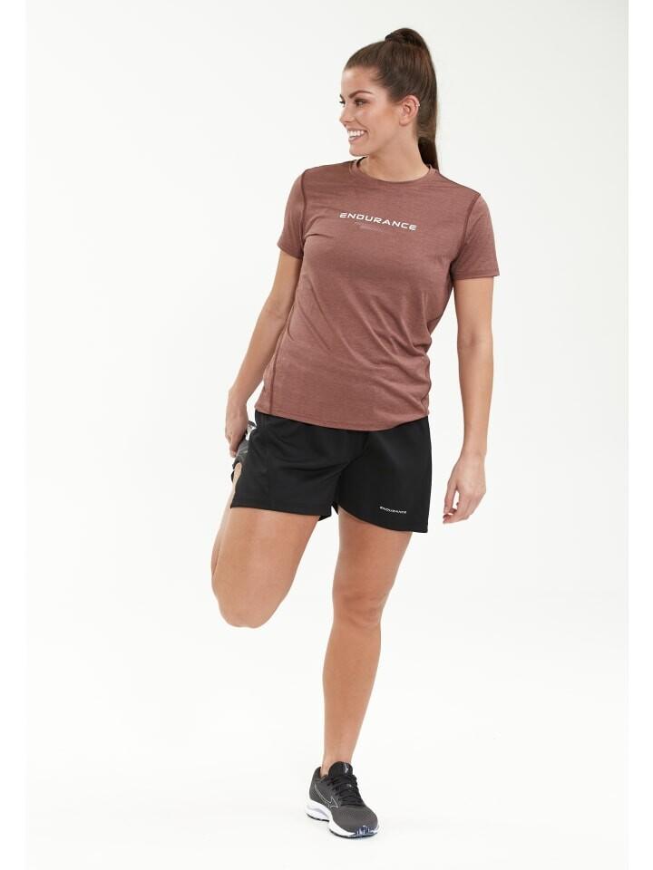 С женскими шортами Carnew W Poly от ENDURANCE вы получаете высококачественные и функциональные шорты для таких тренировок, как бег, фитнес и отдых. Он отличается высокой воздухопроницаемостью. Легкий сетчатый функциональный материал из полиэстера особенно воздухопроницаем и быстро сохнет благодаря инновационной технологии QUICK DRY. Мягкий и широкий пояс удобен и обеспечивает хорошую посадку шорт. Кстати: после интенсивной тренировки спортивные шорты можно просто постирать в стиральной машине при температуре 40 градусов. — Короткие функциональные колготки для женщин от ENDURANCE
