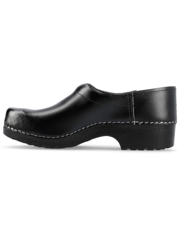 Классические прочные сабо без носка и широкой посадкой, идеально подходящие для дома или работы. Благодаря нескользящей и амортизирующей подошве из полиуретана, а также верхнему материалу из дышащей, водоотталкивающей и прочной кожи Permair, они также подходят для работы в саду. Закрытая пятка предотвращает легкое выскальзывание. Стелька состоит из удобной деревянной подошвы.