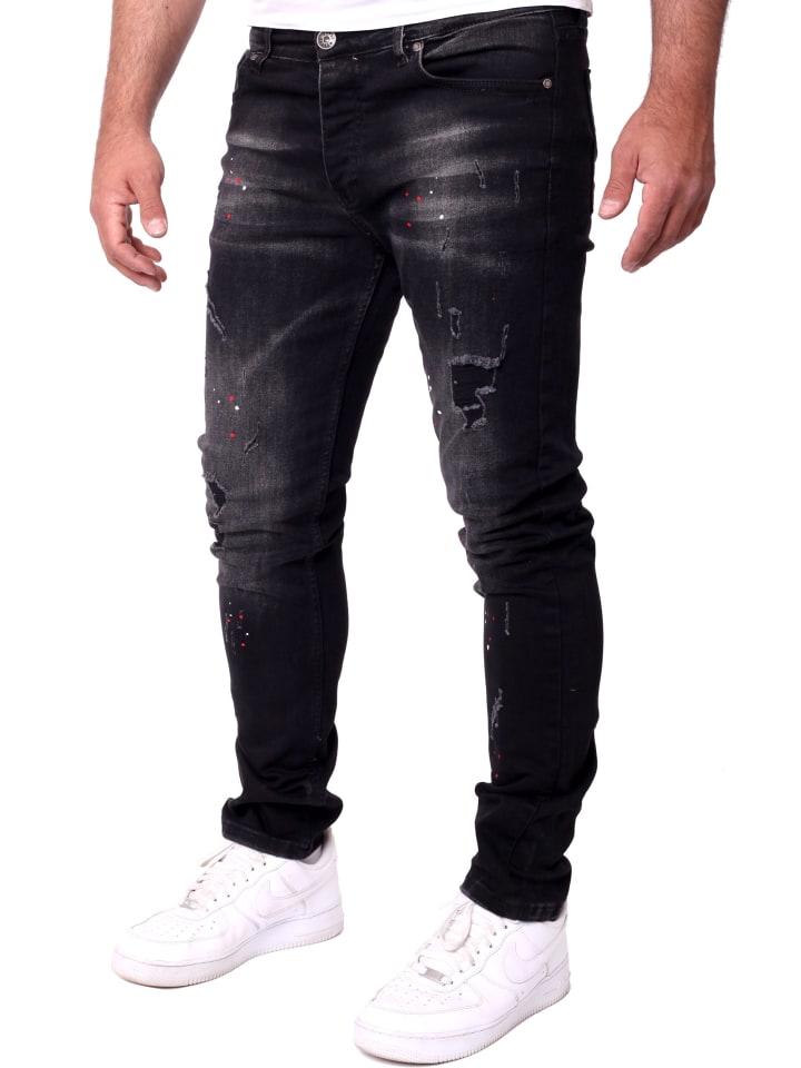 Джинсы Reslad — мужские брюки из эластичного денима б/у Destroyed Vintage Splash of Color Color Splashes Стиль для мужчин RS-2101 Пояс с застежкой на пуговицы
