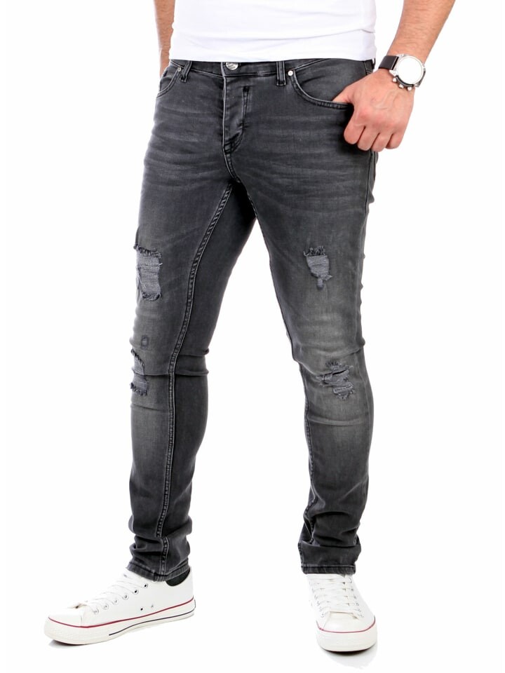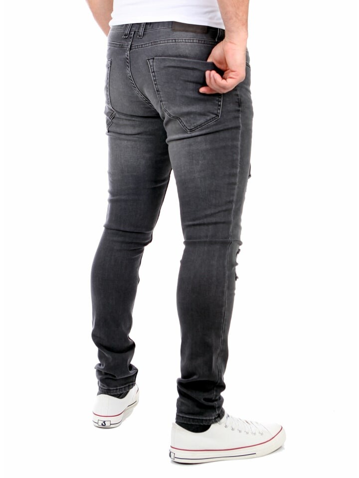 Reslad Jeans Мужские джинсовые эластичные брюки узкого кроя с потертым внешним видом RS-2062 - и задние карманы