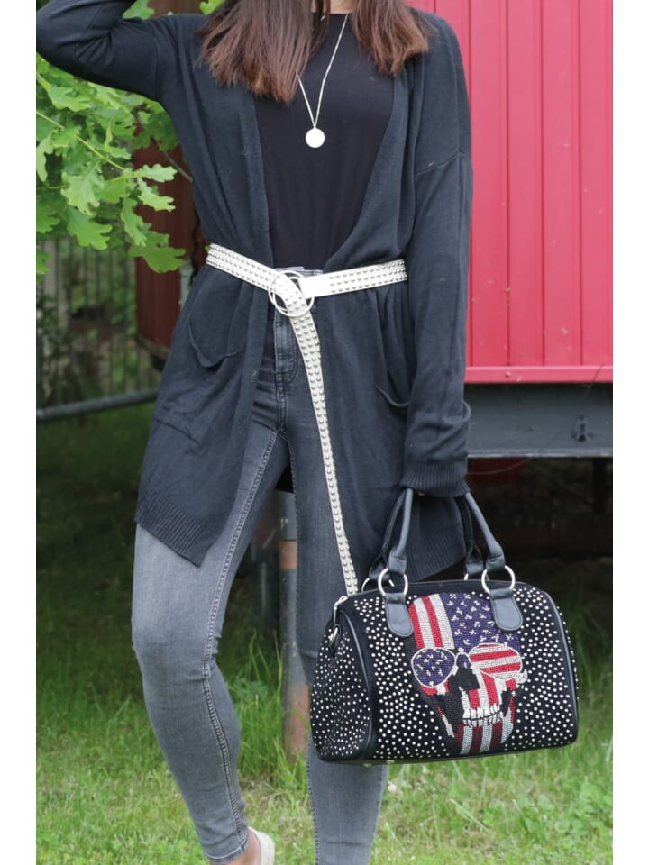 - элегантный дизайн с шариковыми заклепками и блестящей кольцевой пряжкой - заклепки распределены по всей длине - длину ремня можно легко отрегулировать с помощью кольца