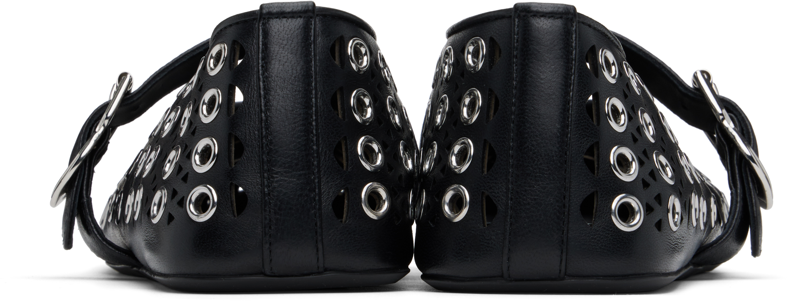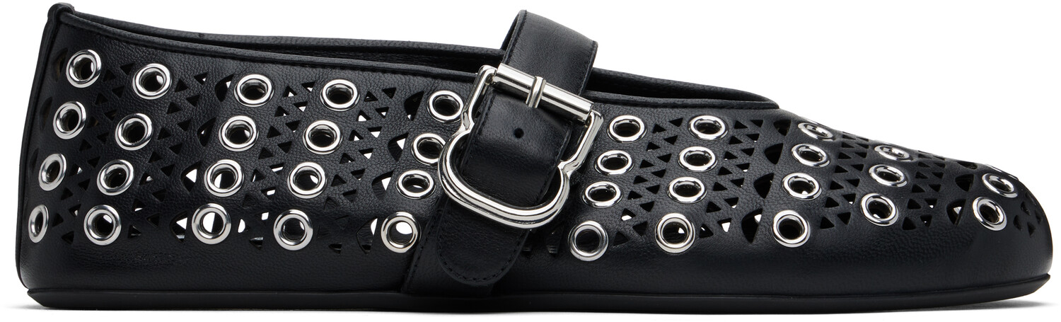 Черные балетки Vienne Lambskin с люверсами. Балетки из зернистой овчины черного цвета. Перфорация и металлические люверсы по всей поверхности. Ремешок с пряжкой на мыске. Подкладка из полированной овчины. Резиновая подошва с протектором. Цвет поставщика: черный. Верх: овчина. Подошва: резина. Сделано в Италии.