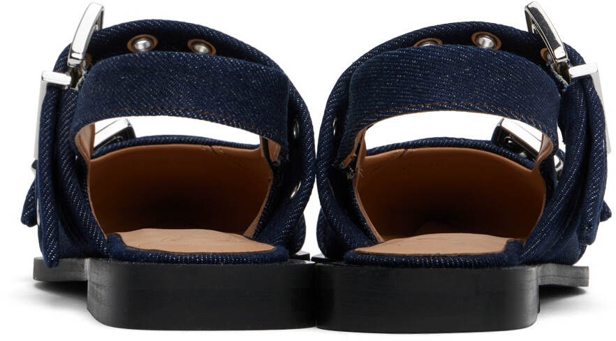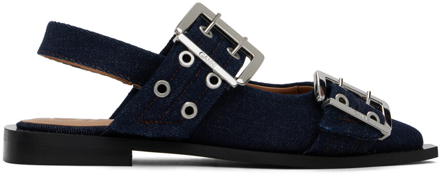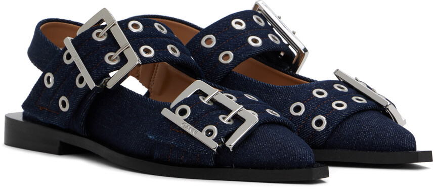 Балетки из темно-синего денима с пряжкой GANNI
