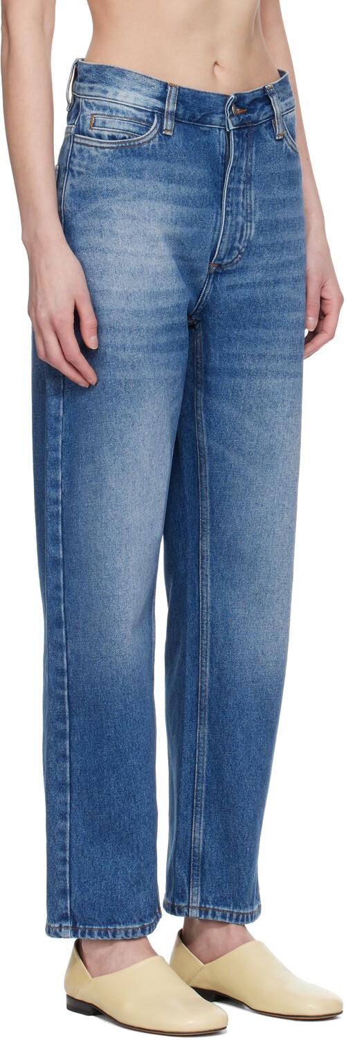 Синие джинсы Ruthe. Свободного кроя джинсы из неэластичного регенеративного хлопкового денима плотностью 14 унций. Выцветание и потертости по всей длине. Окрашены в готовом виде. Высокая посадка. Шлевки для ремня. Пять карманов. Застежка-молния. Укороченные штанины. Изогнутые наружные швы. Кожаная нашивка с логотипом сзади на поясе. Контрастная строчка бежевого цвета. Цвет поставщика: потертый индиго, 52% регенеративного хлопка, 48% хлопка. Сделано в Турции.
