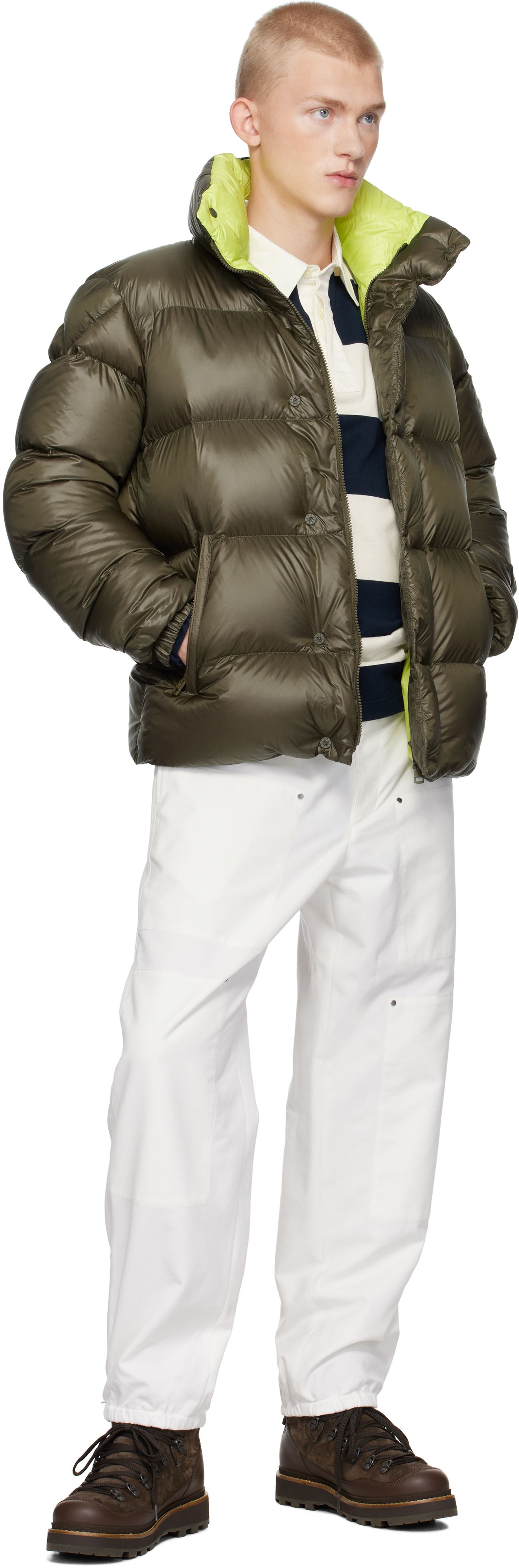 Короткая куртка-пуховик Khaki Leste. Стеганая куртка из нейлоновой тафты с пуховым наполнителем.· Воронкообразный воротник· Двусторонняя застежка-молния с планкой на кнопках· Карманы на молнии· Скрытый шнурок-резинка на подоле· Войлочная нашивка с логотипом на рукаве· Застежка на кнопках на эластичных манжетах· Интегрированные погоны внутри· Прорезной карман внутриЦвет поставщика: оливково-зеленыйНаполнитель: 90% гусиный пух. 10% гусиное перо. Основная часть: 100% нейлон. Подкладка: 100% нейлон. Сделано в Молдове.