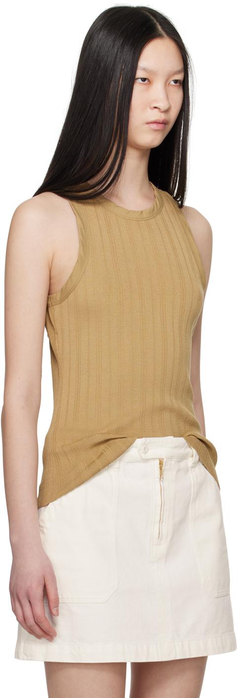 Бежевая майка Natacha Ramsay-Levi Edition Lemaitre. Хлопковая майка в рубчик. · Отделка из джерси на круглом вырезе и проймах. · Необработанный край на подоле. Часть совместной работы APC x Natacha Ramsay-Levi. Цвет поставщика: темно-бежевый, 100% хлопок. Сделано в Турции.