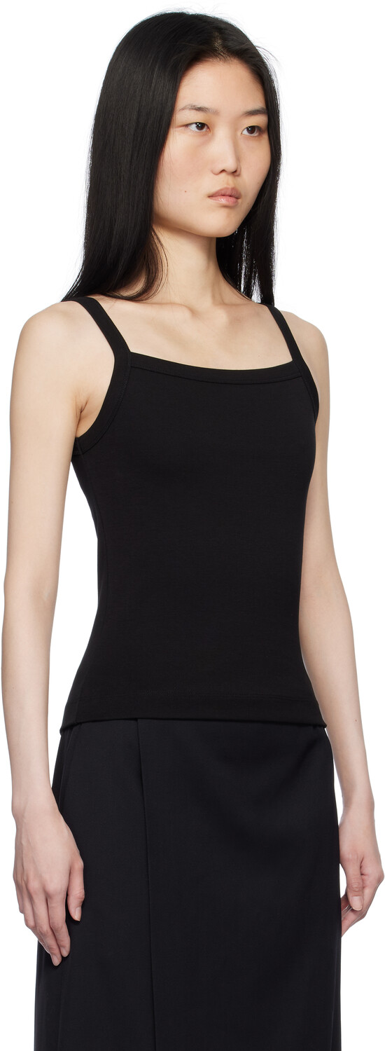 Черная майка. Майка из органического хлопкового джерси. Трикотажный квадратный вырез и бретели из рубчатой вязки. Цвет поставщика: черный, 100% органический хлопок. Сделано в Португалии.
