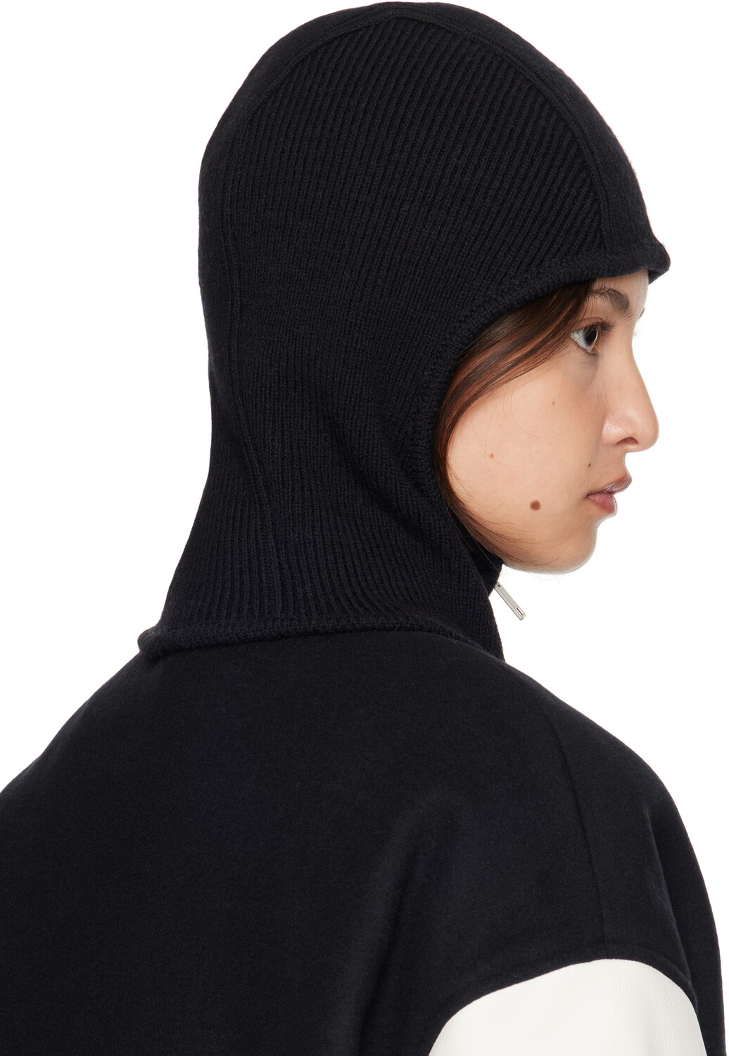 Черная балаклава из рубчатой вязки. Балаклава из натуральной шерсти резиновой вязки черного цвета. · Застежка-молния на шее. · Фурнитура серебристого тона. Цвет поставщика: черный. 100% натуральная шерсть. Сделано в Италии.