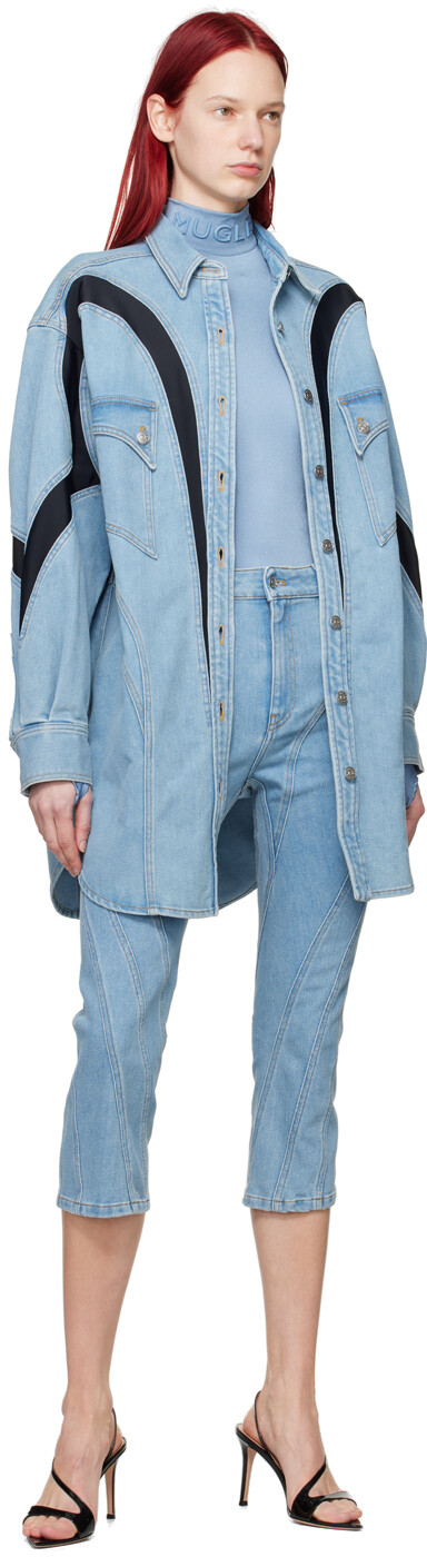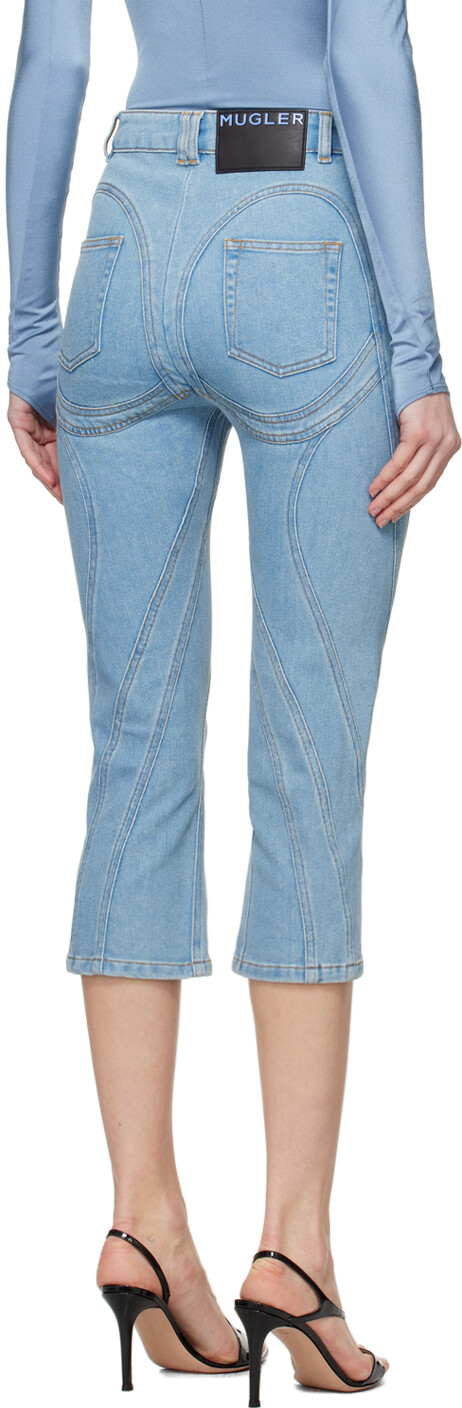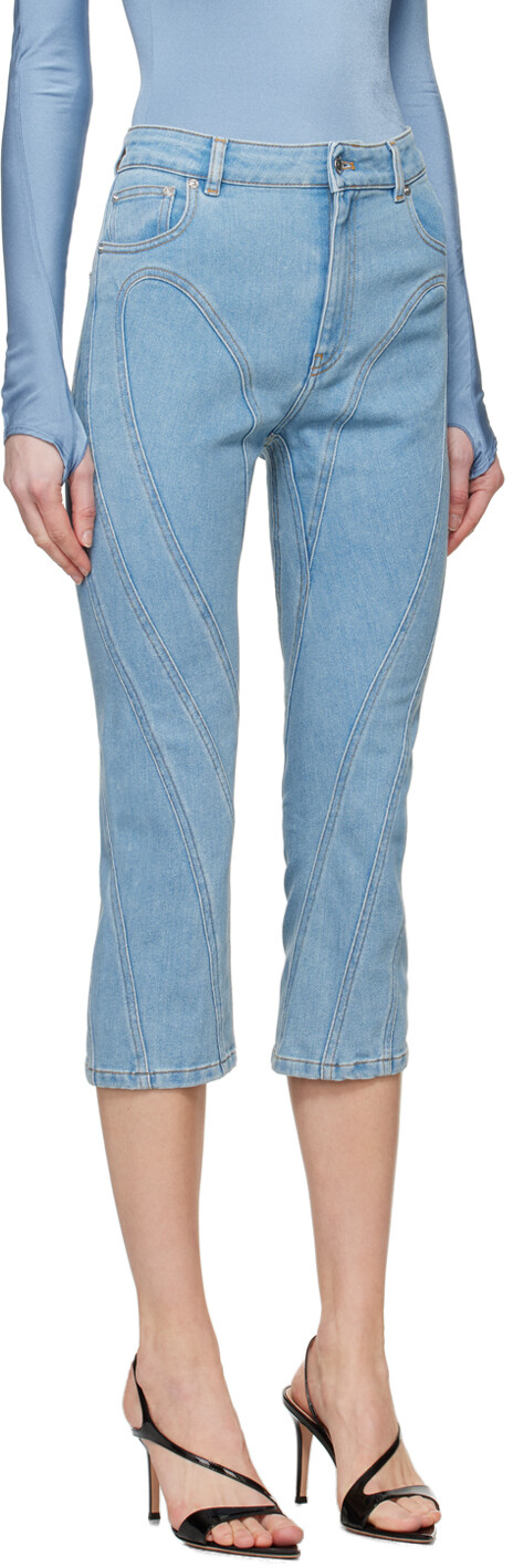 Синие спиральные укороченные джинсы Mugler 25 150₽