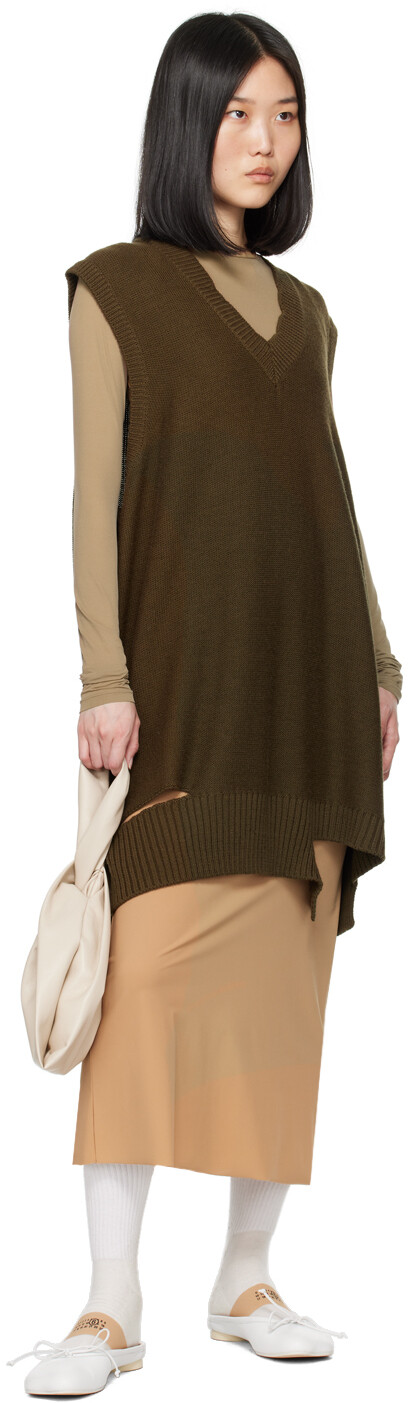 Бежевое платье макси с круглым вырезом MM6 Maison Margiela