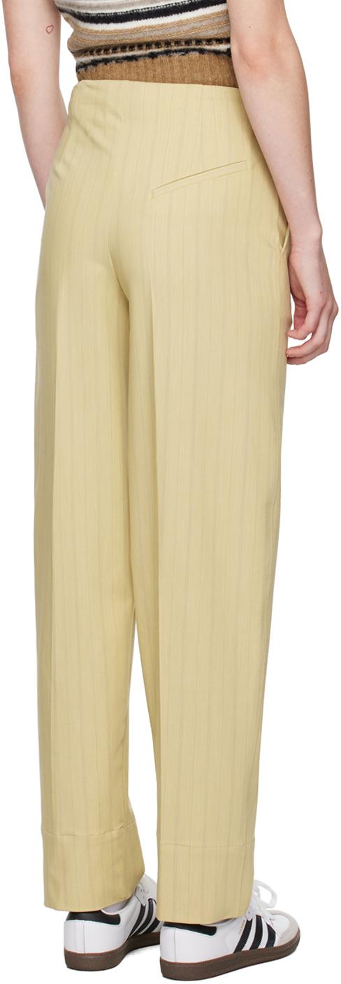 Бежевые костюмные брюки. Прямые брюки из эластичной вискозной ткани LENZING ECOVERO. Полоски по всему крою. Высокая посадка. Три кармана. Застежка-молния. Логотип вышит спереди. Цвет поставщика: Sahara sun. Основная часть: 48% вискоза, 44% переработанный полиэстер, 5% эластан, 3% полиэстер. Подкладка: 100% хлопок. Сделано в Турции.