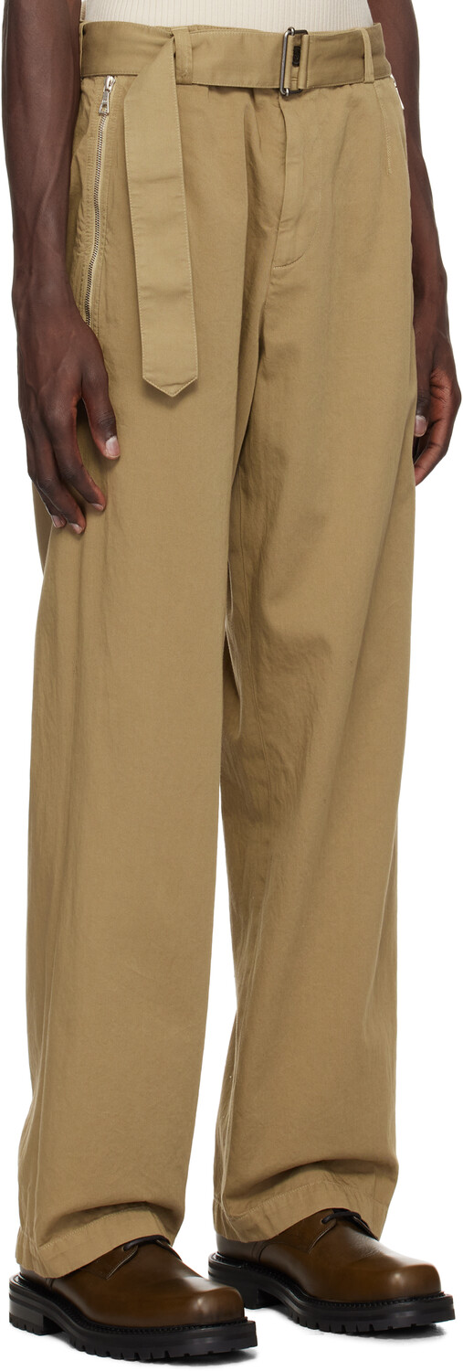 Бежевые прямые брюки с поясом Dries Van Noten 36 308₽