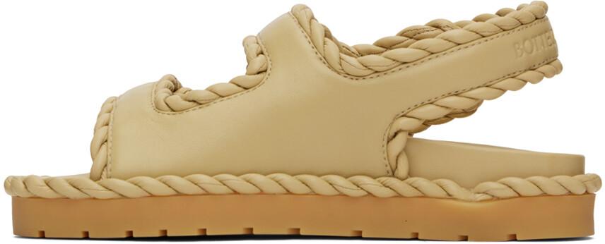 Бежевые сандалии Jack Flat. Сандалии из полированной овчины бежевого цвета. · Плетеная отделка по всей поверхности. · Ремешки на липучках на мыске и щиколотке. · Тисненый логотип на формованной стельке из овчины. · Резиновая подошва с протектором. Цвет поставщика: тростниковый сахар. Верх: овчина. Подошва: резина. Сделано в Италии.