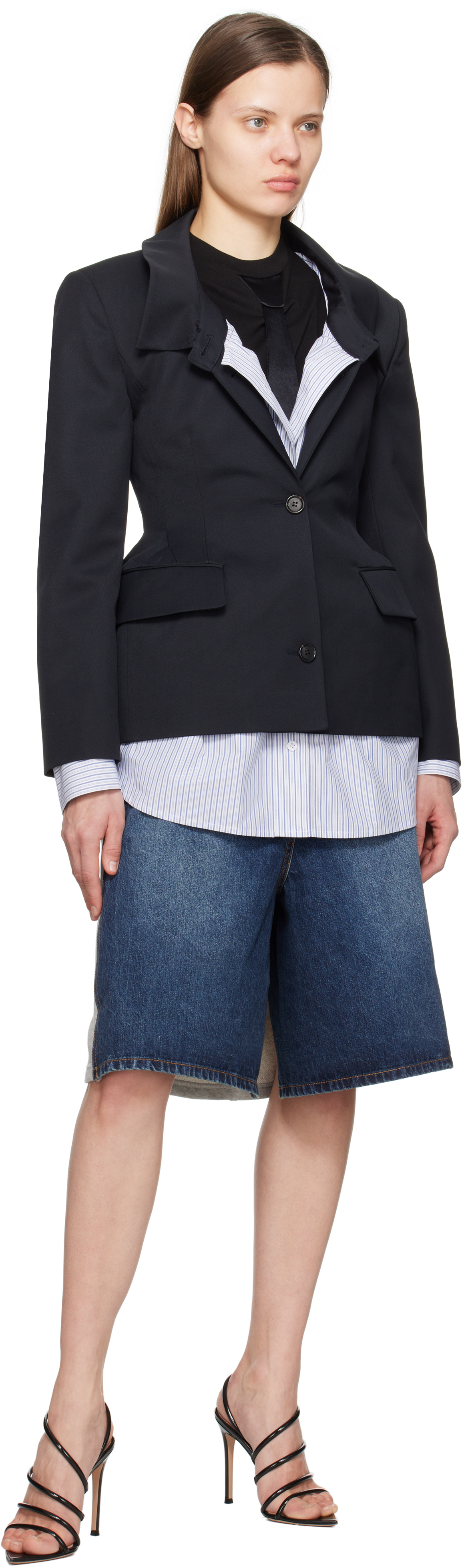 Синяя гибридная юбка-шорты. Неэластичная джинсовая ткань и юбка-шорты из французского трикотажа. · Панельная конструкция· Шлевки для ремня· Три кармана · Застежка-молния· Центральная шлица на подоле · Кулиска на эластичном поясе сзади · Интегрированная подкладка для трусиков· Выгравированный логотип серебристого цвета· Контрастная строчка цвета загараЦвет поставщика: темно-синий Корпус 1: 100% хлопок. Корпус 2: 100% хлопок. Сделано в Южной Корее.
