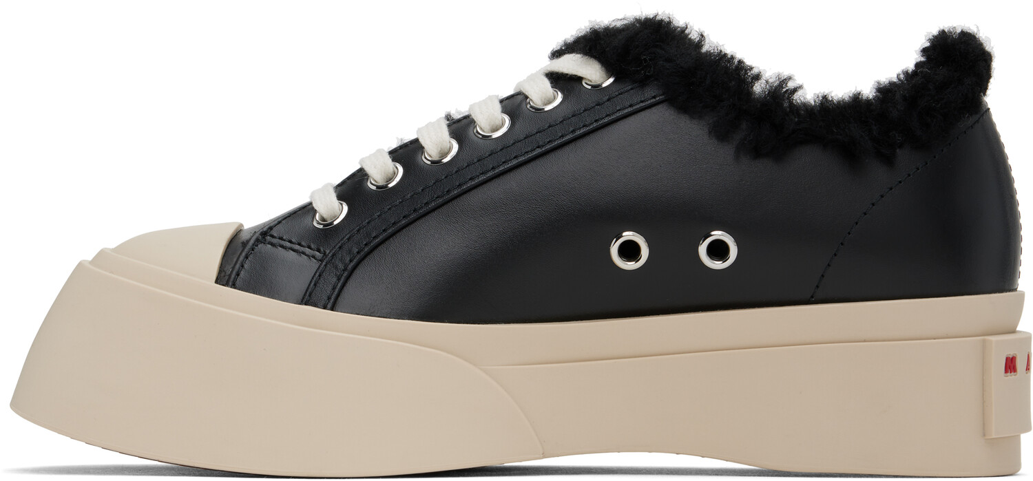 Черные кроссовки Pablo из кожи и овчины. Низкие кроссовки из полированной телячьей кожи черного цвета. · Отделка овчиной по всей длине · Резиновый носок · Шнуровка · Логотип на мягком язычке · Люверсы для вентиляции с внутренней стороны · Логотип, тисненый на кожаной стельке · Подкладка из овчины · Логотип, тисненый на пятке · Резиновая подошва с протектором · Платформа: H1.75" Цвет поставщика: черный Верх: телячья кожа. Подошва: резина. Сделано в Италии.