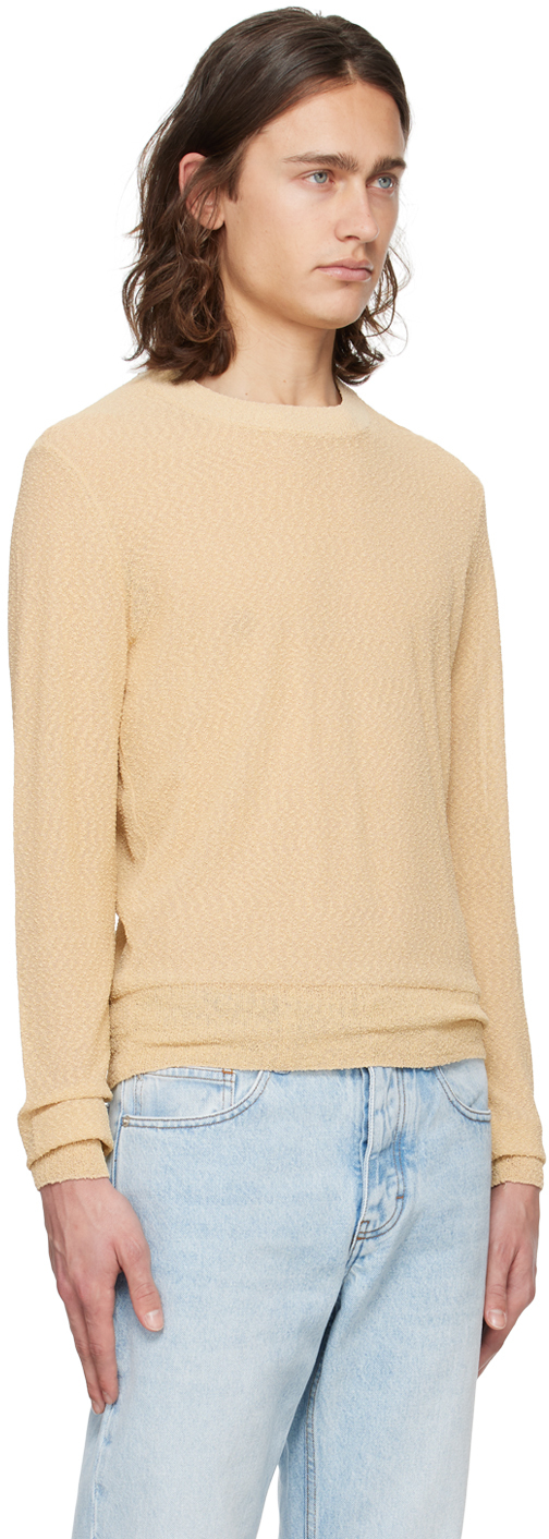 Бежевый полупрозрачный свитер. Полупрозрачный свитер из смеси вискозы и переработанного нейлона с букле. Круглый вырез горловины в рубчик. Цвет поставщика: кремовый/721 75% вискозы, 25% переработанного полиамида. Сделано в Италии.