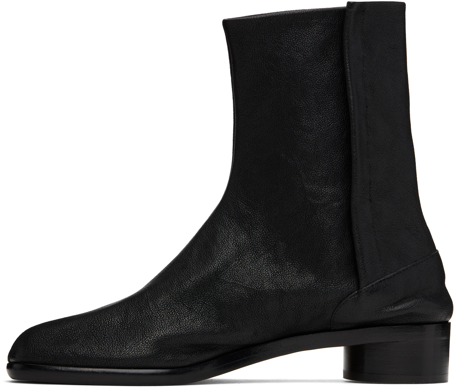 Черные ботильоны Tabi. Ботинки из зернистой верблюжьей кожи черного цвета.· Квадратный раздвоенный носок.· Скрытая застежка на крючки с внутренней стороны.· Фирменная белая строчка на воротнике пятки.· Подкладка из полированной овчины.· Наборный цилиндрический каблук с резиновым напылением.· Полированная подошва из телячьей кожи.· Каблук: H2.5". Цвет поставщика: черный. Верх: верблюжья кожа. Подошва: телячья кожа, резина. Сделано в Италии.