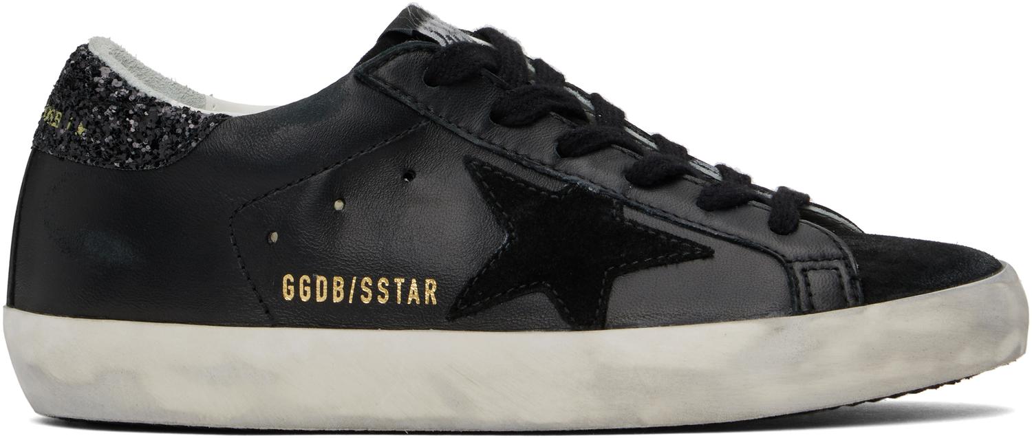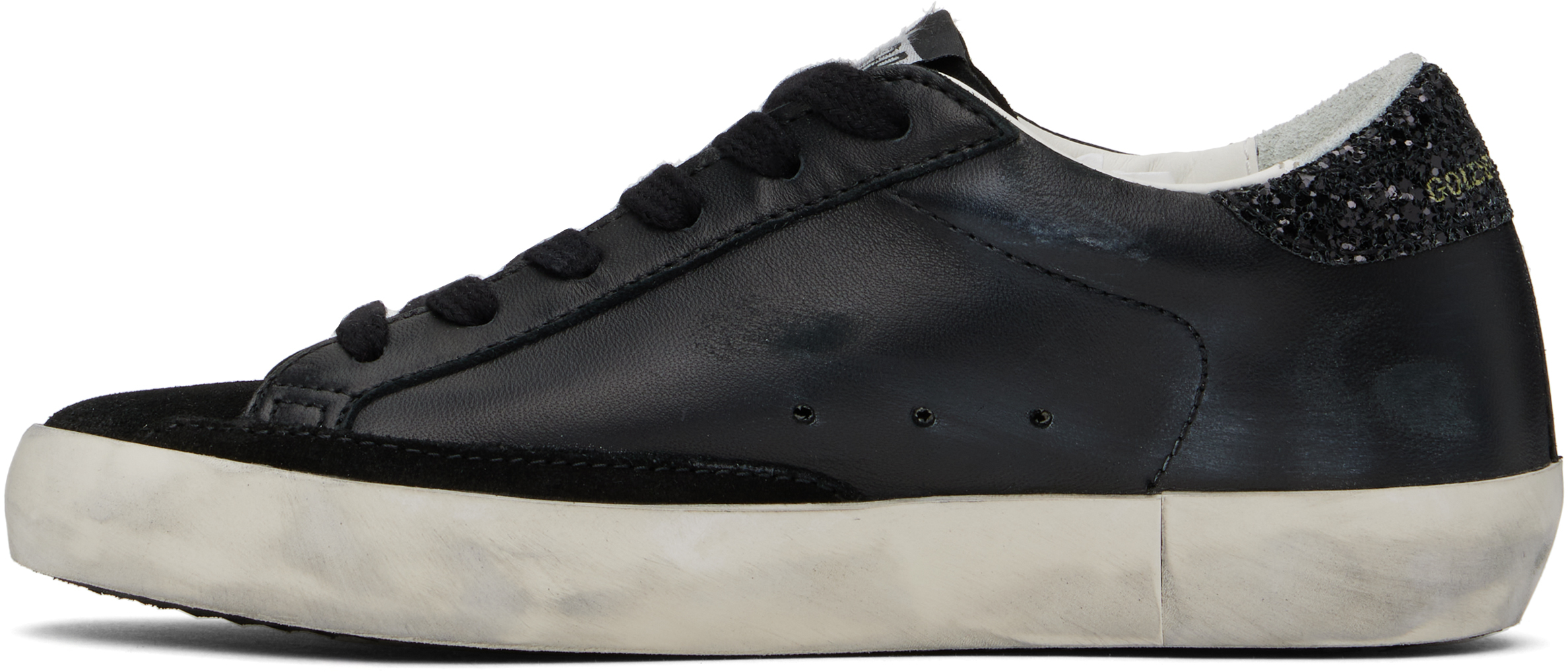 Черные кроссовки Super-Star Classic. Черные низкие кроссовки из полированной овчины и замши черного цвета.· Размазывание по всей поверхности· Шнуровка· Нашивка с логотипом на язычке· Мягкий воротник· Аппликация в виде звезды на внешней стороне· Золотистый логотип на внешней стороне· Логотип, напечатанный на блестящем воротнике пятки· Махровая ткань, полированная кожа и замшевая подкладка· Резиновая подошва с протекторомЦвет поставщика: черный Верх: овчина, кожа. Подошва: резина. Сделано в Италии.