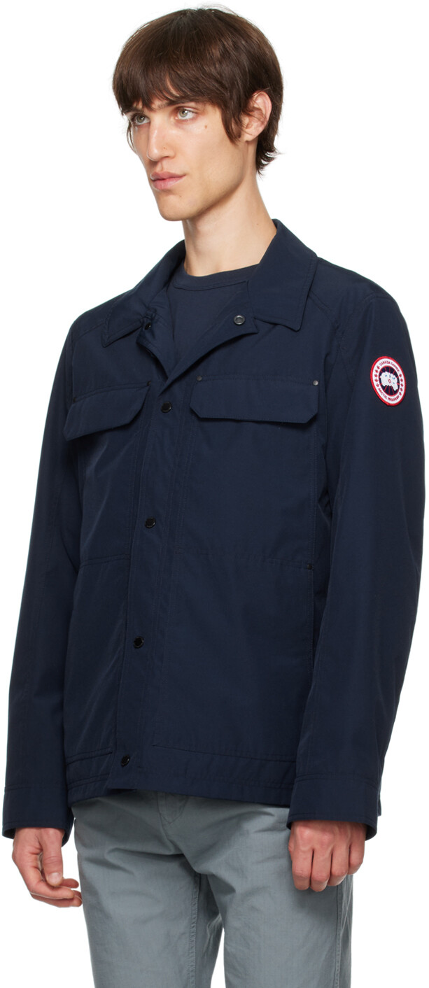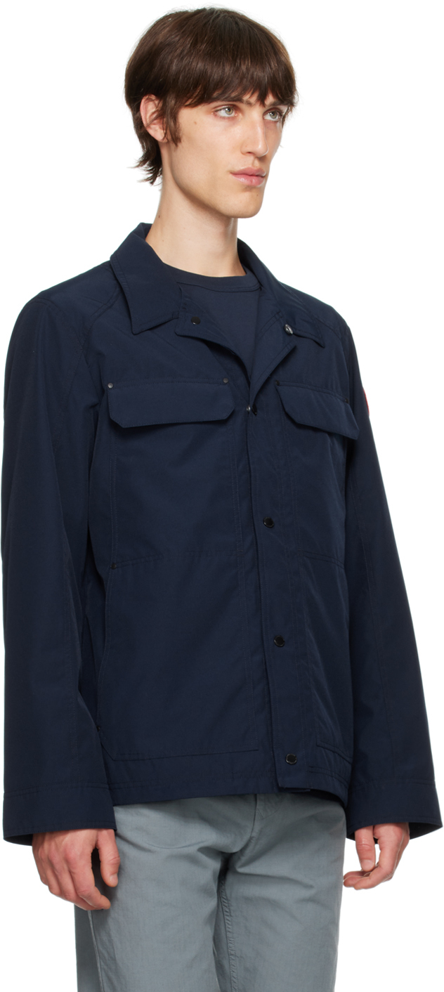 Куртка Navy Burnaby. Куртка из ткани Arctic Tech из смеси полиэстера и хлопка. Легкая, водоотталкивающая и прочная. · Отложной воротник · Застежка на кнопку · Карманы с клапаном и накладные · Вышитый логотип на рукаве · Регулируемая застежка на кнопку на манжетах · Светоотражающая отделка на заднем воротнике · Прорезной карман внутри · Полностью атласная подкладка Цвет поставщика: Атлантический темно-синий Основная часть: 84% полиэстер, 16% хлопок. Подкладка: 100% полиэстер. Сделано в Канаде.