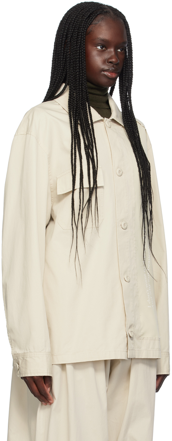 Пиджак Off-White Panelled. Пиджак из хлопкового габардина. Панель из полиэстерового холста с необработанными краями и напечатанным текстом спереди. · Отложной воротник · Застежка на пуговицы · Карман с клапаном · Регулируемые манжеты-бочонки на одной пуговице · Белая строчка на заднем воротнике · Без подкладкиЦвет поставщика: мел Корпус 1: 100% хлопок. Корпус 2: 100% полиэстер. Сделано в Италии.