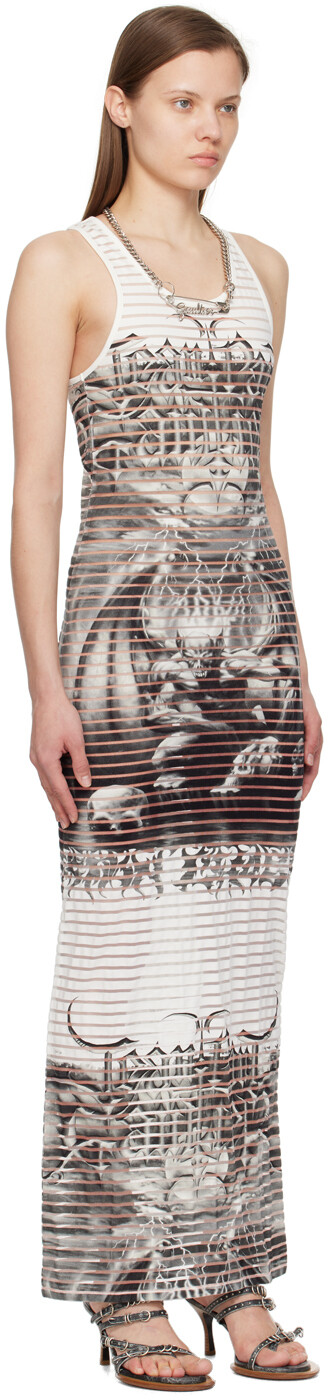 Бело-черное платье макси с вырезом лодочкой Jean Paul Gaultier