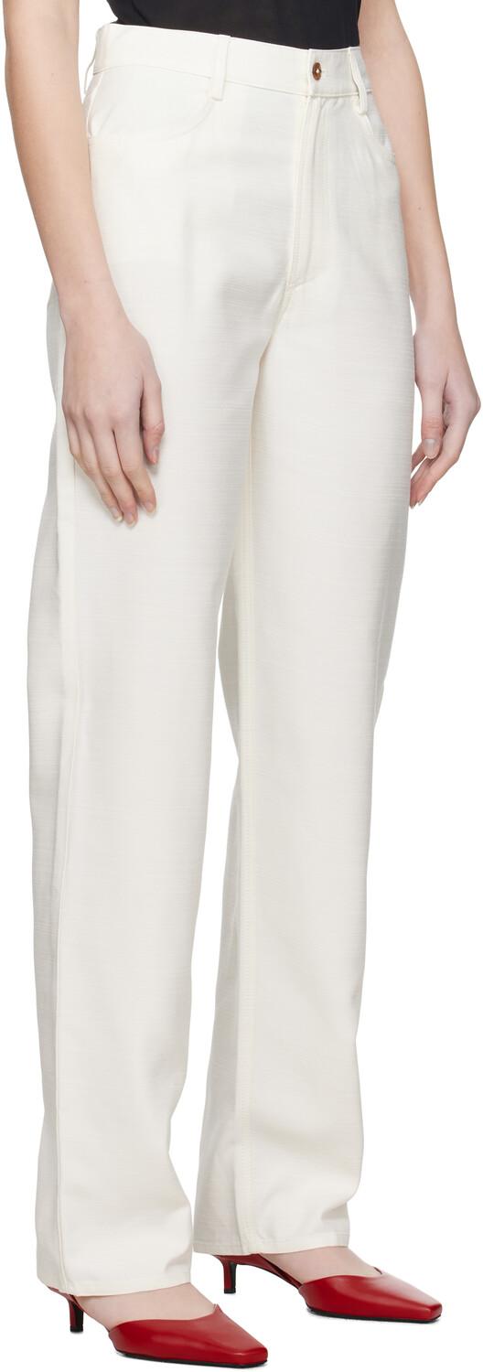 Белые брюки Ardea. Брюки из вискозы гладкого переплетения, сертифицированные OEKO-TEX.· Шлевки для ремня· Модель с четырьмя карманами· Застежка-молнияЦвет поставщика: слоновая костьОснова: 100% вискоза. Подкладка: 100% вискоза. Сделано в Румынии.
