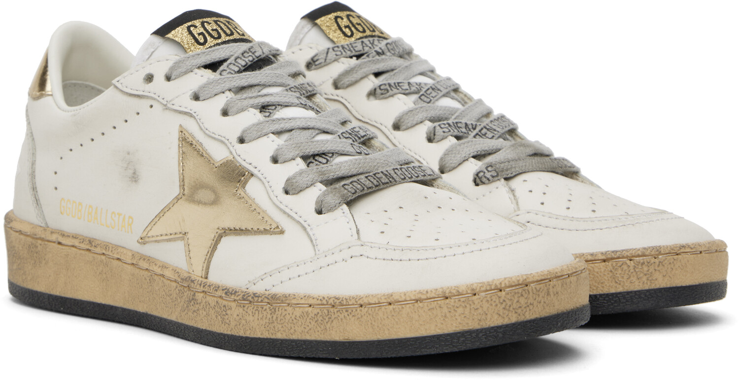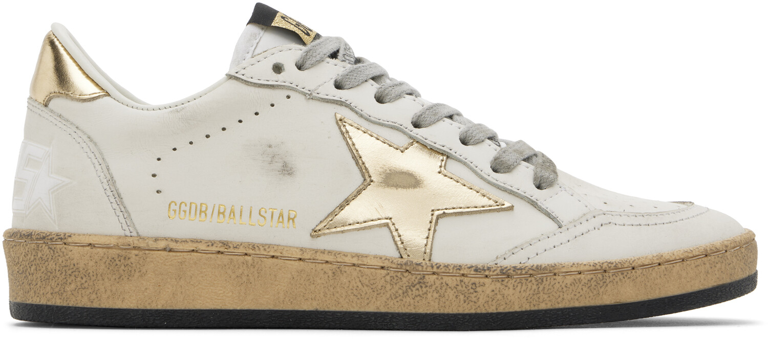 Белые и золотые кроссовки Ball Star Golden Goose