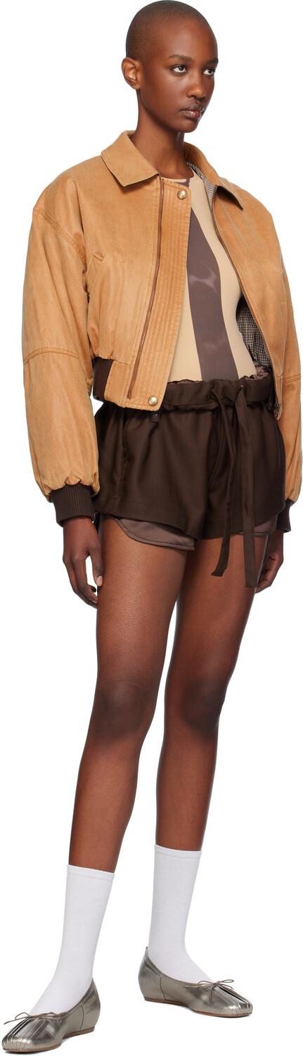 Куртка-бомбер цвета загара Paper Like Crop. Утепленная куртка-бомбер из смеси хлопка и полиэстера.· Отложной воротник· Застежка-молния· Прорезные карманы· Укороченный подол и манжеты из трикотажной резинки· Карман для мелочей на рукаве· Вышитый логотип на заднем воротнике· Полностью стеганая подкладка в клетку· Фурнитура цвета оружейной стали с гравировкой логотипаЦвет поставщика: верблюжий Корпус 1: 55% хлопок, 45% полиэстер. Корпус 2: 85% акрил, 10% шерсть, 5% полиуретан. Подкладка: 100% полиэстер. Наполнитель: 100% полиэстер. Сделано в Южной Корее.