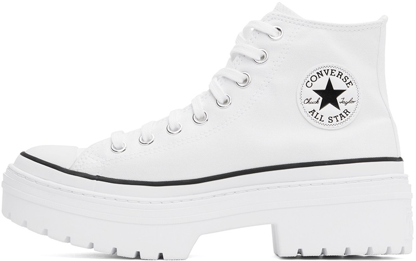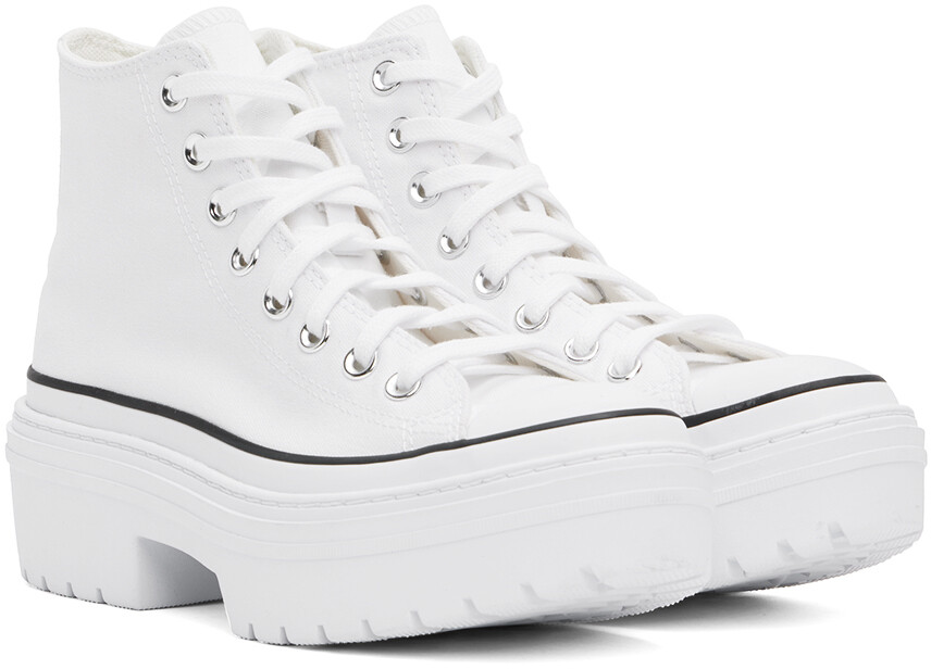 Белые кроссовки Chuck Taylor All Star с выступами на платформе. Высокие парусиновые кроссовки белого цвета.· Резиновый носок.· Шнуровка.· Нашивка с логотипом на внутренней стороне.· Сетчатая подкладка.· Мягкая стелька OrthoLite.· Прорезиненный логотип на пятке.· Резиновая подошва с выступами.· Платформа: H1.75". Цвет поставщика: белый/черный/Egret. Верх: текстиль. Подошва: резина. Сделано во Вьетнаме.