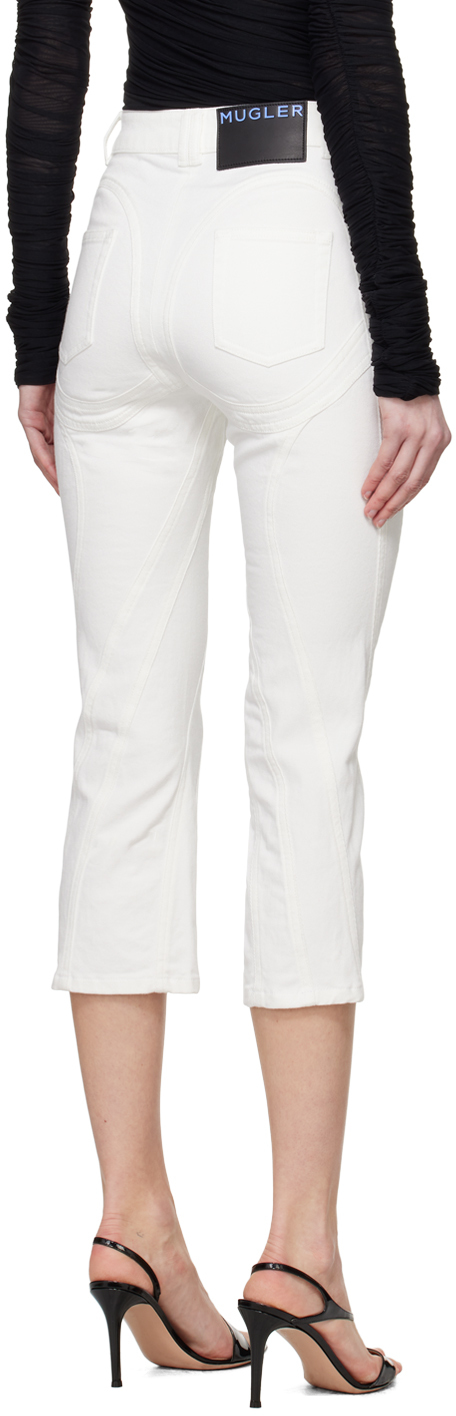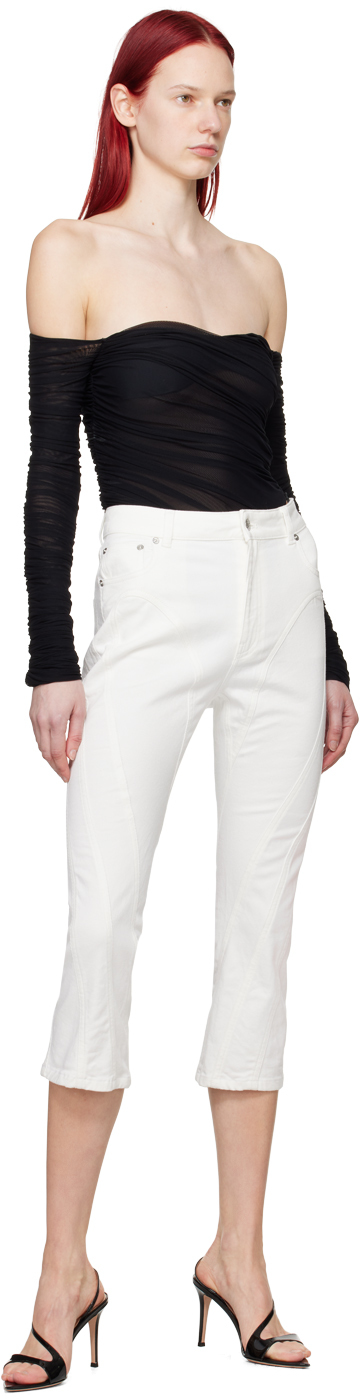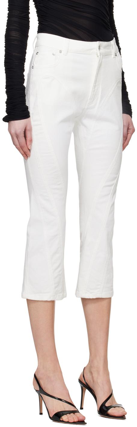 Белые спиральные укороченные джинсы Mugler