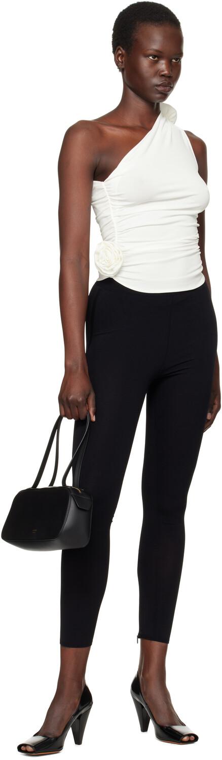 Белый топ на одно плечо. Легкий топ из эластичного вискозного трикотажа.· Конструкция с одним плечом.· Цветочная аппликация на боковом шве и плече.· Сборки на боковых швах. Цвет поставщика: кремовый 97% вискозы, 3% эластана. Сделано в Польше.