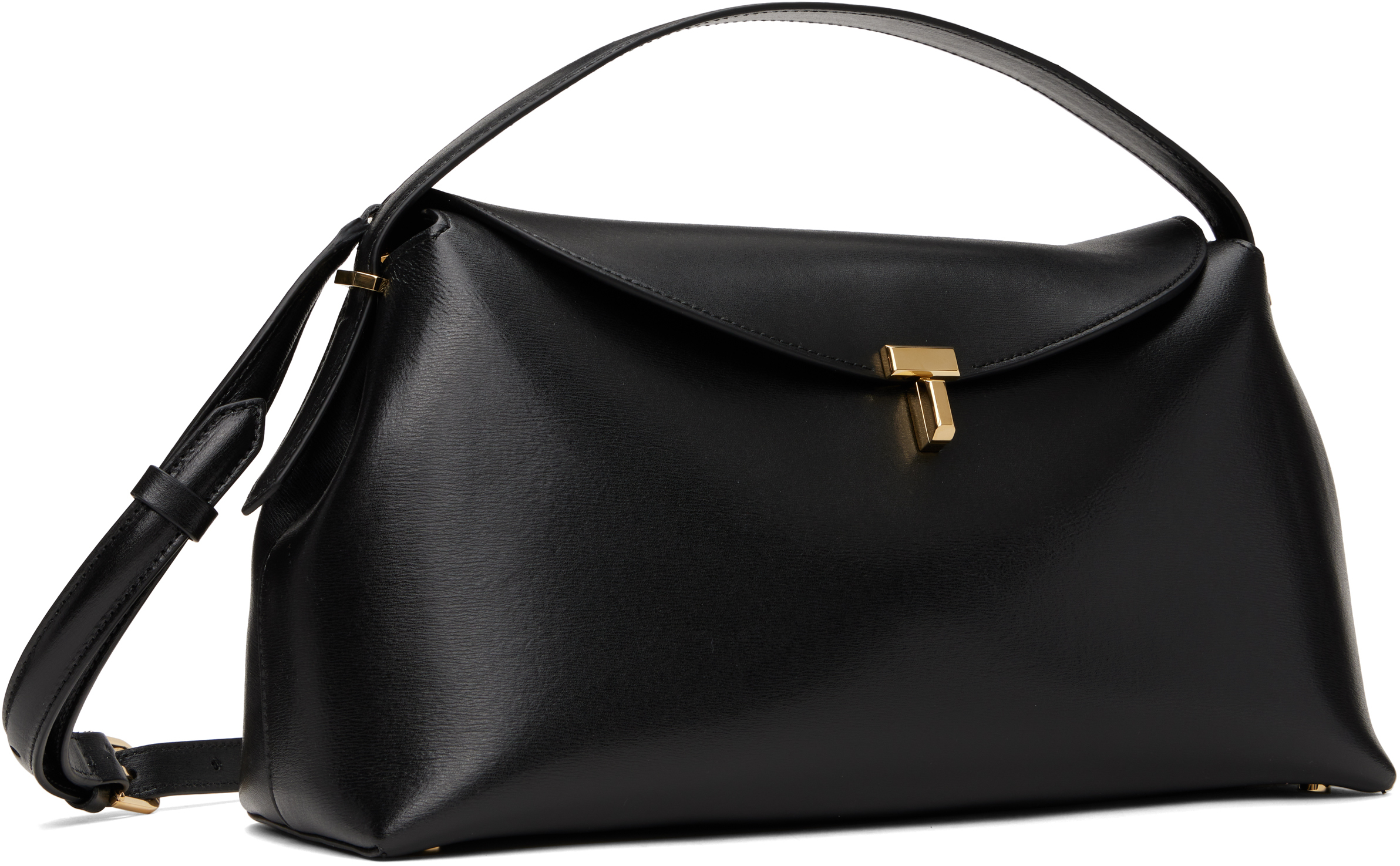 Черная сумка с верхней ручкой T-Lock. Сумка с верхней ручкой из зернистой кожи черного цвета.· Фиксированная ручка для переноски· Регулируемый и съемный плечевой ремень· Заклепки-амортизаторы у основания· Клапан с поворотным замком· Накладные карманы внутри· Подкладка из искусственной замши· Золотистая фурнитура с гравировкой логотипа· В7" x Ш13,5" x Г4,5"Цвет поставщика: черная кожа, синтетика. Сделано в Италии.