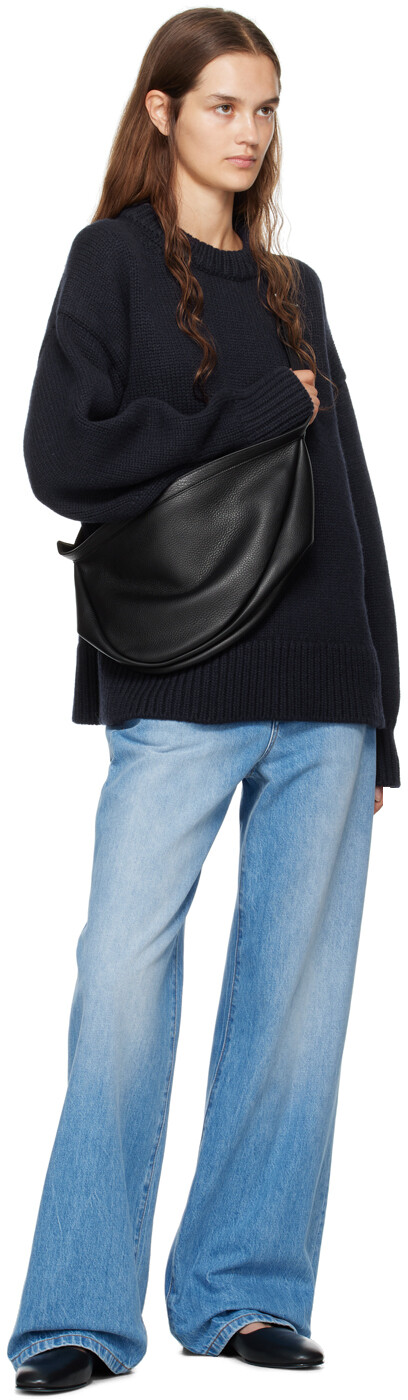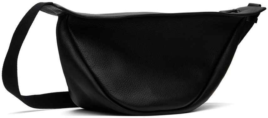 Большая черная сумка-банан с напуском. Сумка через плечо из зернистой телячьей кожи черного цвета. · Регулируемый ремень через плечо из тесьмы · Застежка-молния · Подкладка из замши · В8,75" x Ш16" x Г6,5"Цвет поставщика: черная телячья кожа. Сделано в Италии.