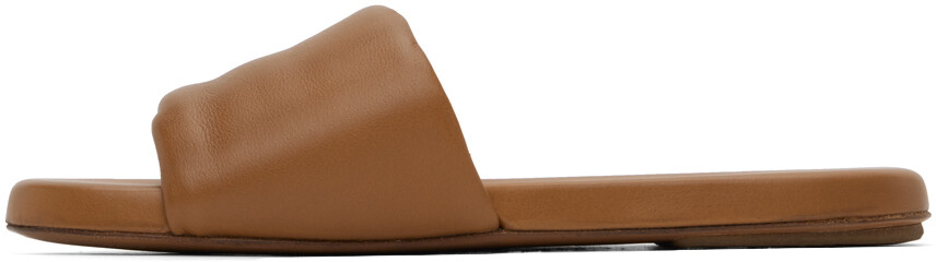 Коричневые сандалии Spanciata. Сандалии ручной работы из полированной кожи без застежек коричневого цвета.· Открытый круглый носок.· Тисненый логотип на стельке.· Резиновая вставка на кожаной подошве. Цвет поставщика: орех. Верх: кожа. Подошва: кожа, резина. Сделано в Италии.