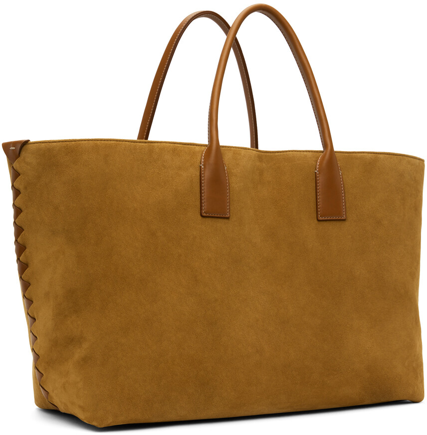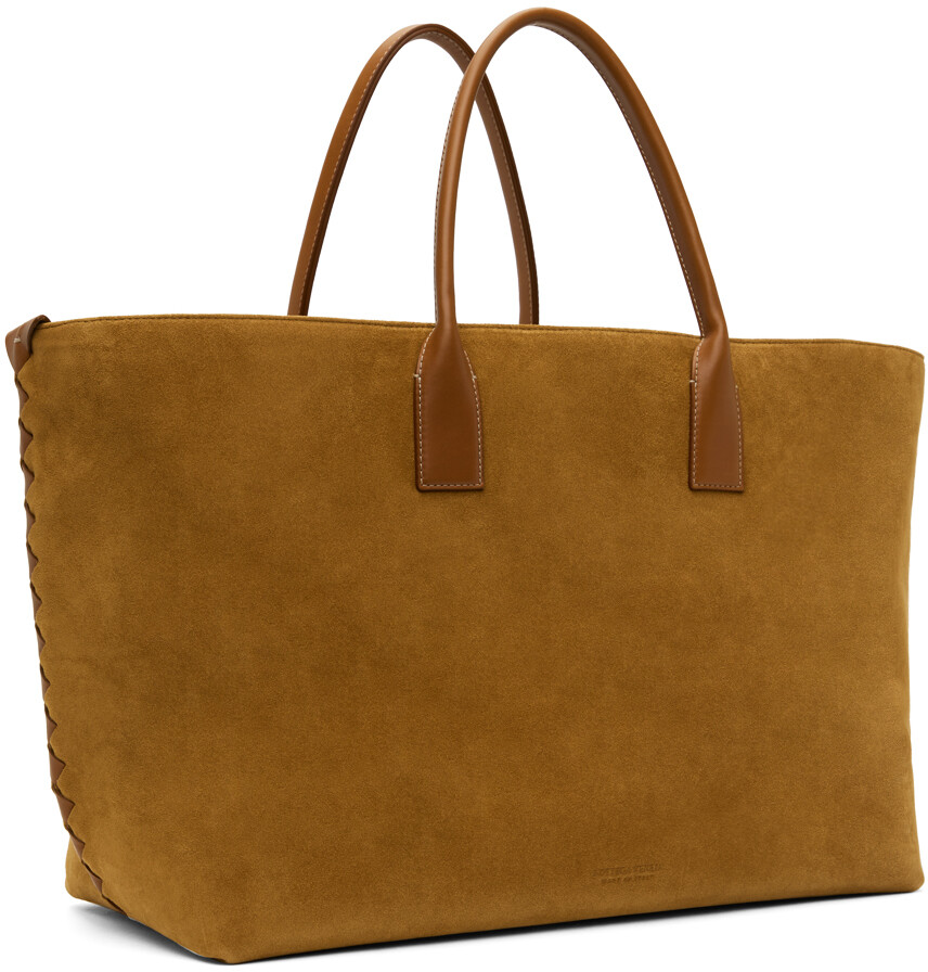 Сумка-тоут Cabat большого размера Tan. Сумка-тоут из телячьей замши бежевого цвета. Двойные закрученные ручки для переноски. Отделка плетением Intrecciato по бокам. Тисненый логотип на задней стороне. Открытый вырез. Брелок для ключей внутри. Карман на молнии и накладные карманы. В13" x Ш18" x Г8". Цвет поставщика: верблюжья/светлое дерево. Сделано в Италии.