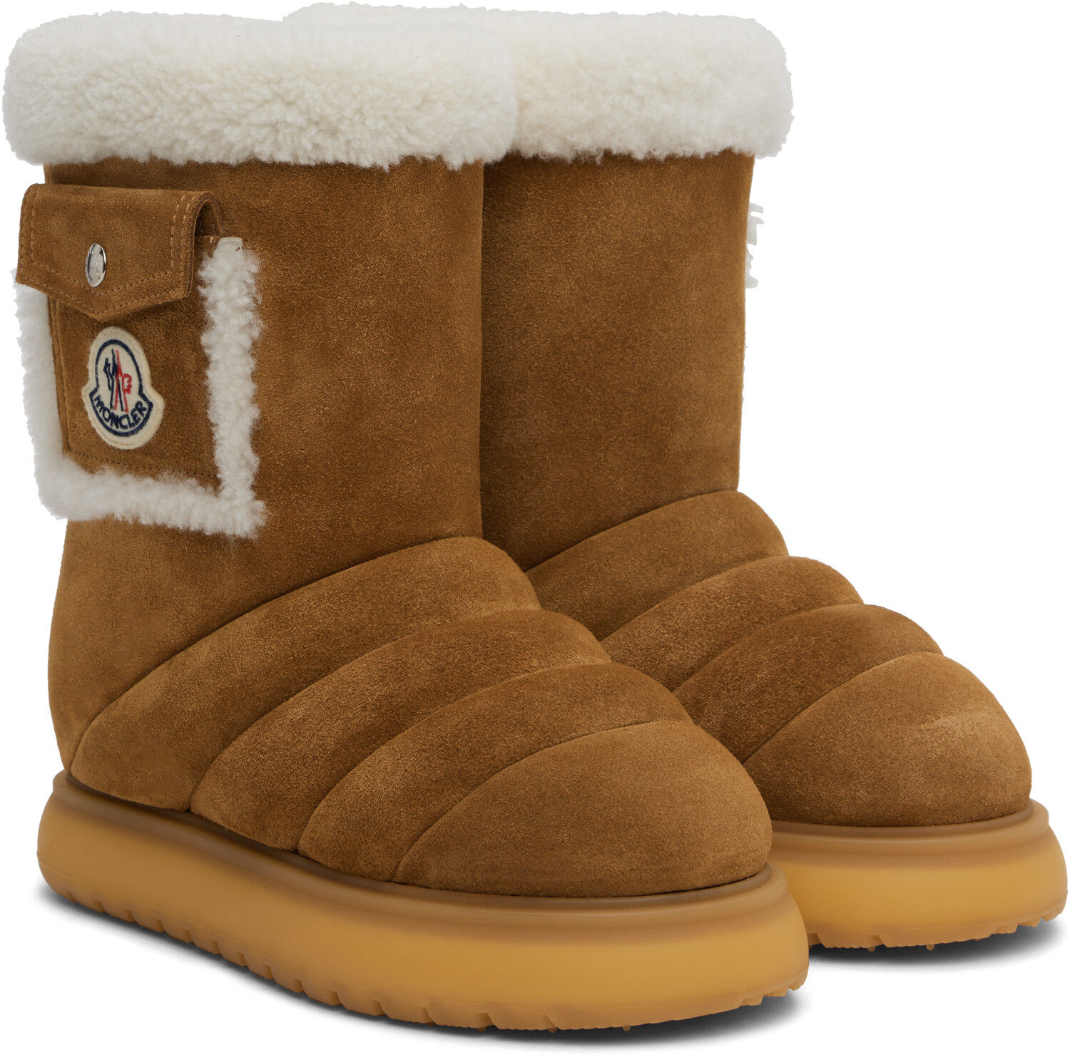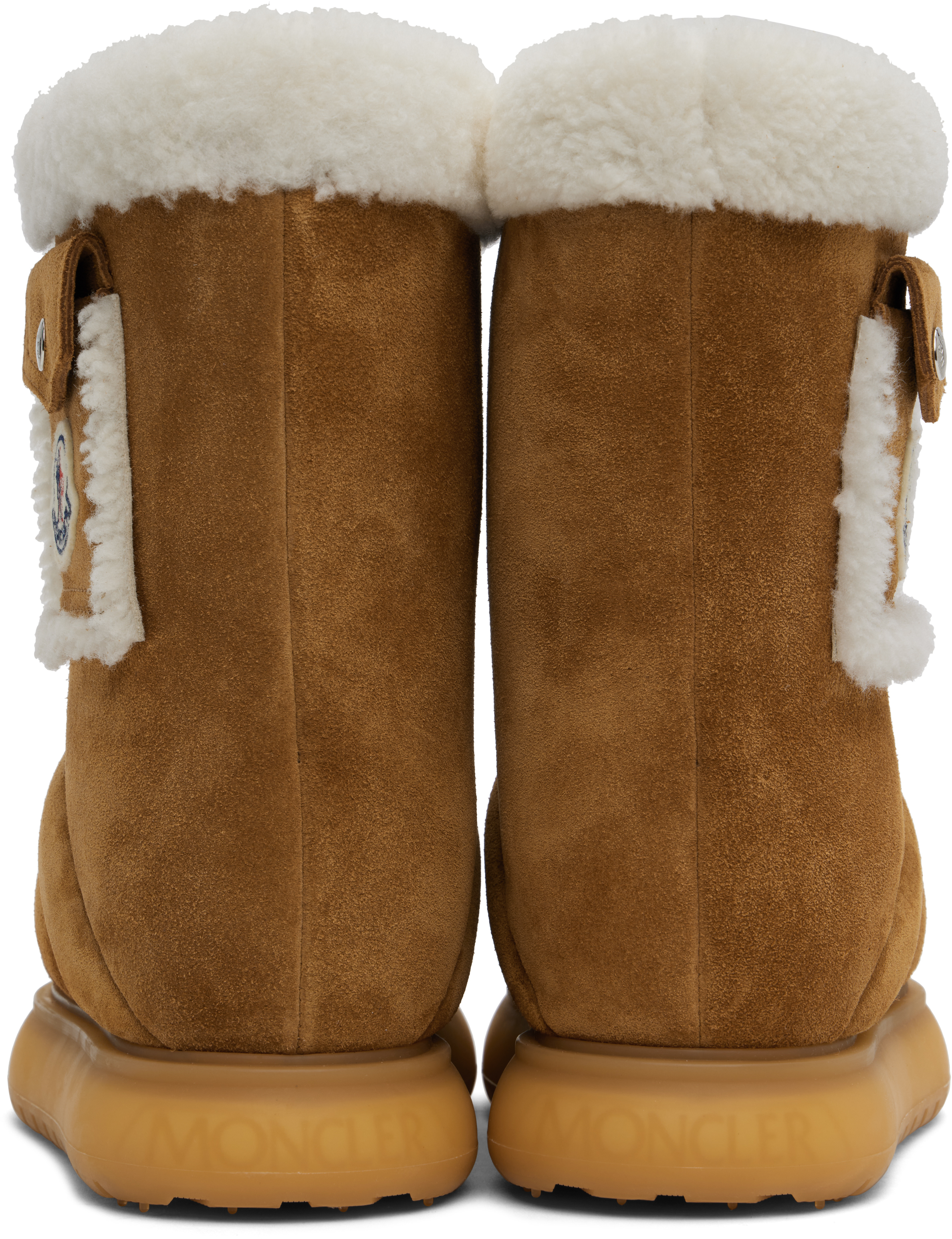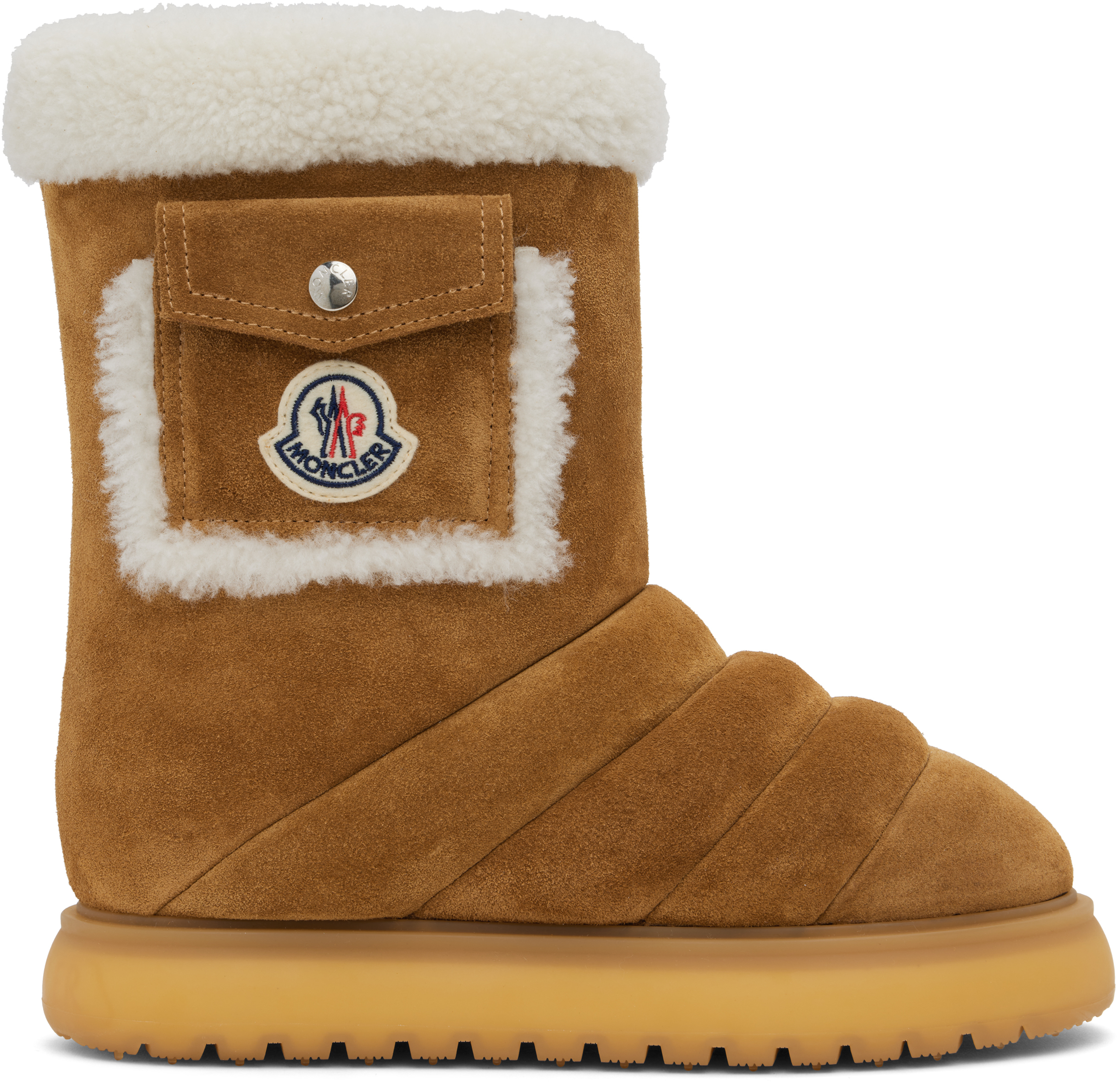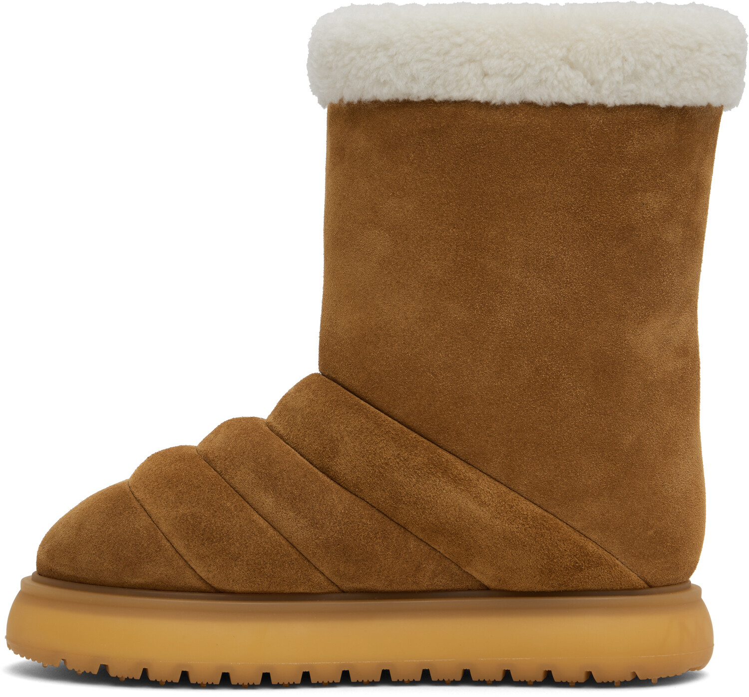 Ботинки Tan Gaia Pocket Mid Snow. Ботинки из овчины и замши до середины голени в коричневом цвете.· Стеганая отделка на мыске.· Отделка овчиной на воротнике.· Карман с клапаном на внешней стороне.· Войлочная нашивка с логотипом на внешней стороне.· Внутренняя часть из овчины.· Резиновая подошва с протектором. Цвет поставщика: коричневый. Верх: овчина. Подошва: резина. Сделано в Италии.