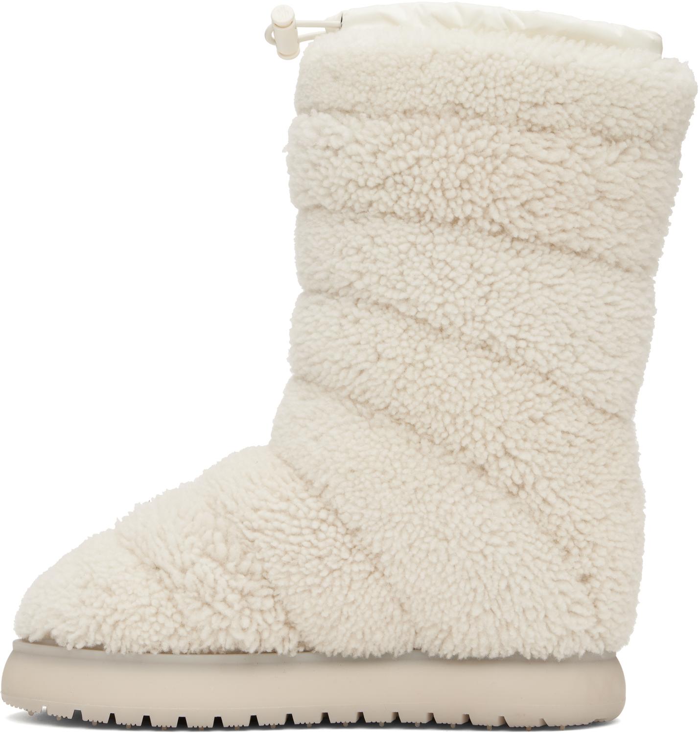 Белые полусапожки Gaia Pocket Mid Shearling. Стеганые полусапожки из овчины с пуховым наполнителем белого цвета. · Затягивающийся шнурок на воротнике. · Карман с клапаном на внешней стороне. · Трехцветная войлочная нашивка с логотипом. · Водонепроницаемая и стеганая подкладка из нейлонового атласа. · Резиновая подошва с протектором. Цвет поставщика: белый. Наполнитель: 90% пуха, 10% пера. Верх: кожа. Подошва: резина. Сделано в Италии.